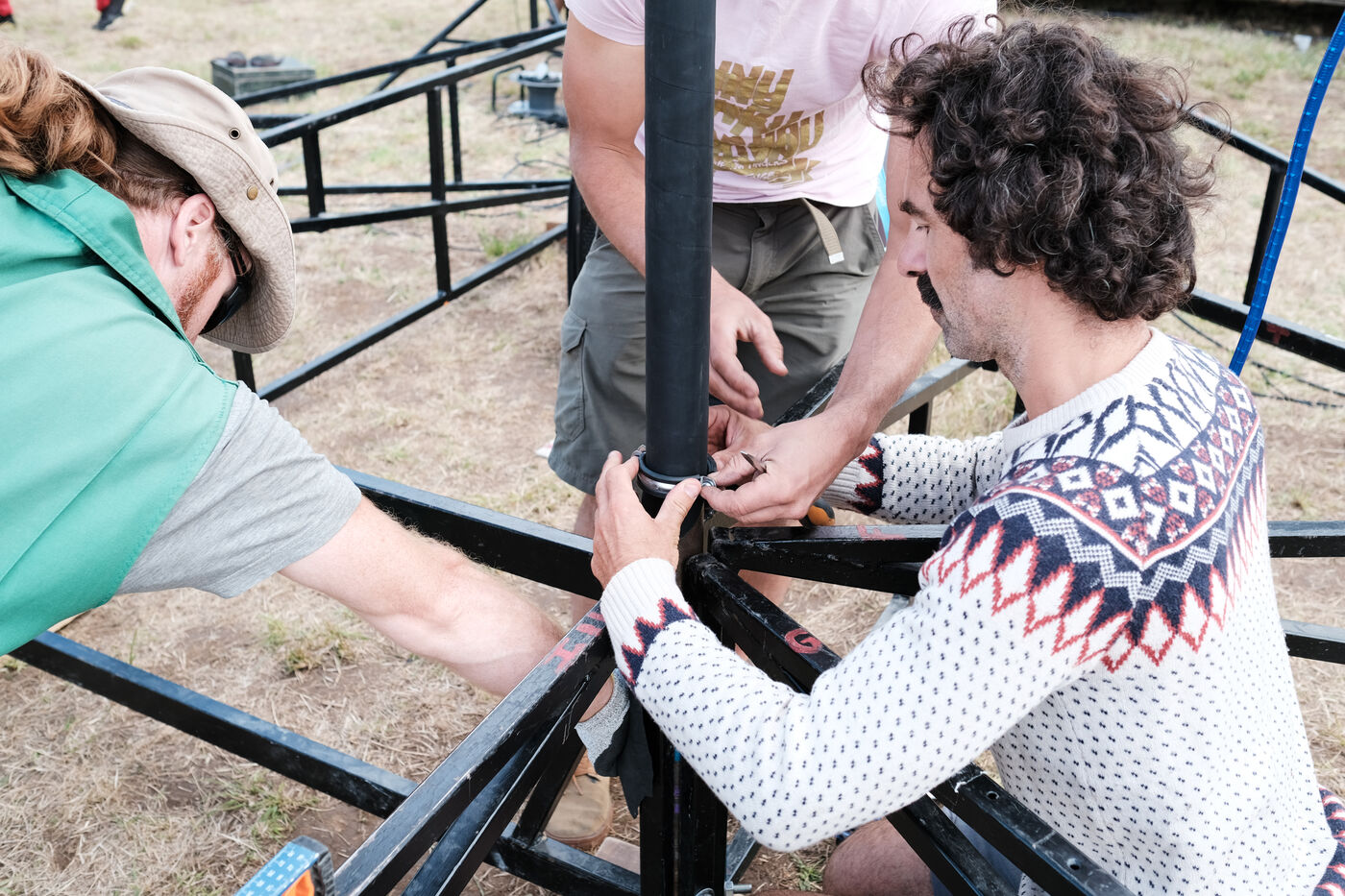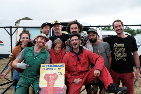 France, Aurillac, 2022-08-19. La compagnie théâtrale Five foot fingers revient au festival de théâtre de rue d'Aurillac pour jouer leur spectacle "en éventail" en 2022. J'ai suivi la troupe avant et pendant leur représentation.
