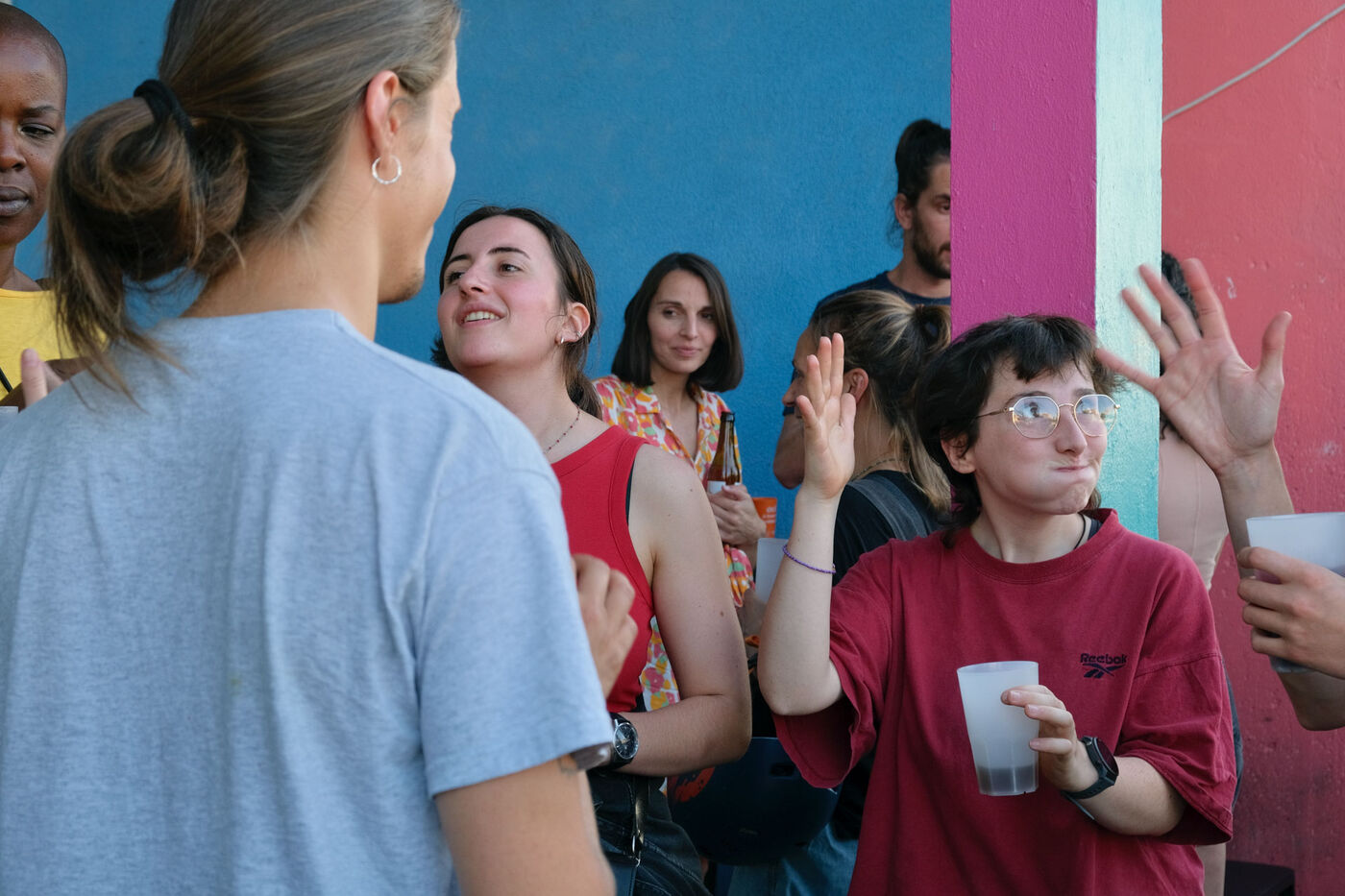 Des malentendants, des personnes sourdes, des entendants, des traductrices, tout le monde vient faire l'expérience simple d'un verre entre ami.e.s.