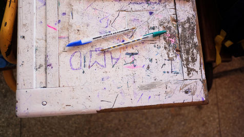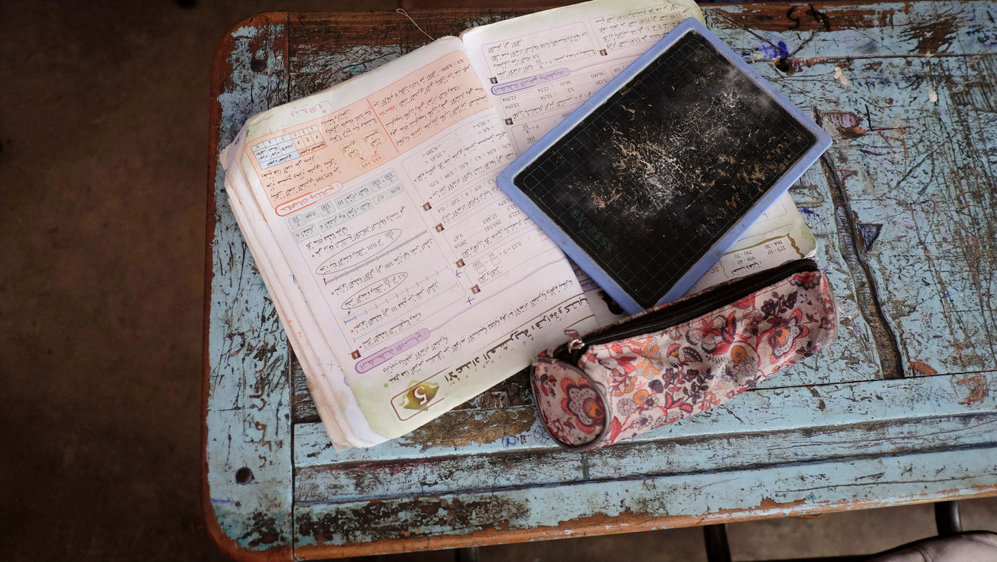 I met a person who decided to act and who does it well. I met with the school principals who express their hope that they have finally met her. Their happiness at having seen it restore their dignity and faith in their mission. I saw all this in the eyes of the teachers, in the eyes of the children as well, of course. And I have chosen to show it to you by starting by revealing traces of it, by letting you imagine these young schoolchildren through their belongings placed in class during recreation. Traces of the future, for better or for worse.