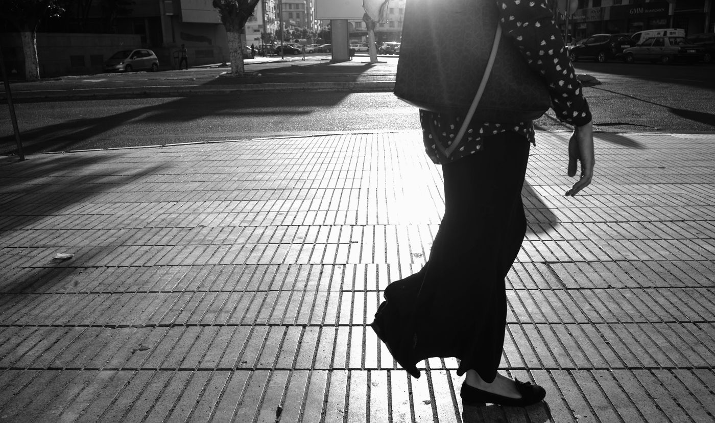 5. "To our women passers-by": "Lightning... and then night! Fugitive beauty whose gaze has suddenly made me reborn, Will I see you only in eternity? » (Charles Baudelaire's « A une passante »). In Casablanca the reality is less poetic: I have too often heard women friends of mine complaining about the simple fact of having to walk in our streets. They are regularly called, "complimented" or harassed, and have developed a real apprehension about getting out of their homes. Some of them develop a whole clothing strategy to go as unnoticed as possible and be left in peace. Why would such aggressions be experienced as inevitable? Why not denounce them more strongly? And me, a street photographer, where do I stand in all this? Admirer without aggression or intentions? I believe so.