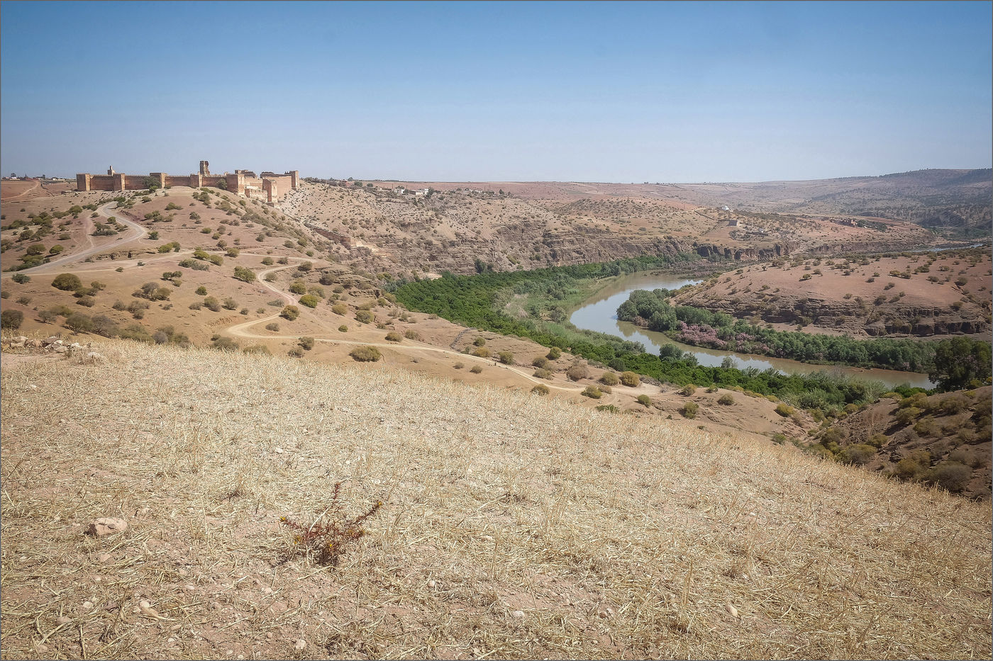The kasbah of Boulaouane... coiled in the meanders of the Oum Errabii river, lost in the folds of my memory. I often heard about it from weekend adventurers and other lovers of good food and wine. One morning I decided to go to this place where none of our usual roads lead. At the borders of the Chaouia and Doukkala plateaus, the signs do not indicate this destination and the GPS leaves you with no information during the last kilometers. The countless holes in the road even make you seriously doubt your sense of direction. But here is finally the ksar of Boulaouane which stands before you on its promontory, proud and beautiful like a label (!)