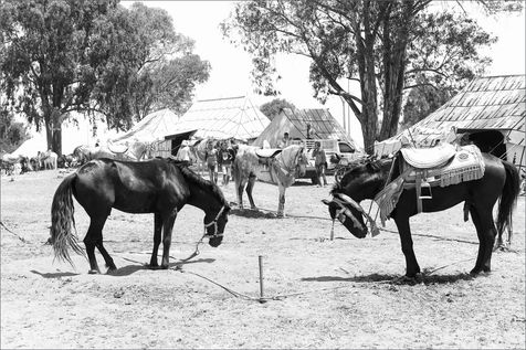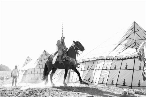 « La fantasia / tbourida (de baroud, la poudre à canon) est un art équestre traditionnel pratiqué au Maghreb se manifestant par la simulation d'assauts militaires. Elle prend le plus souvent la forme d'évolutions équestres au cours desquelles des cavaliers, munis de fusils à poudre noire et chevauchant des montures richement harnachées, simulent une charge de cavalerie dont l'apothéose est le tir coordonné d'une salve de leurs armes à feu. » (Wikipedia)