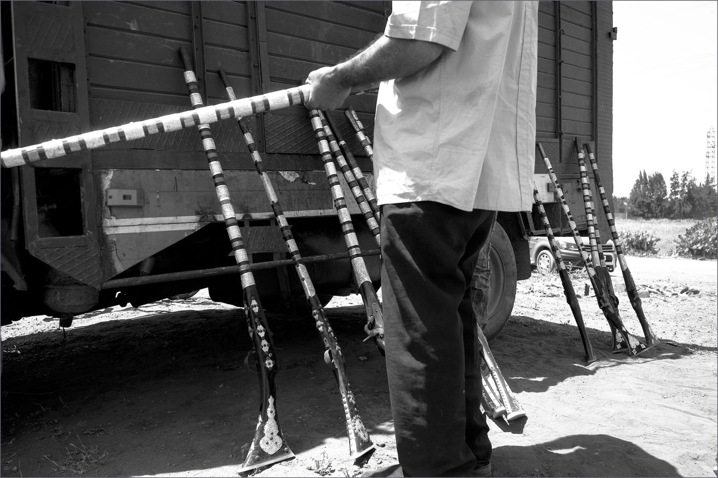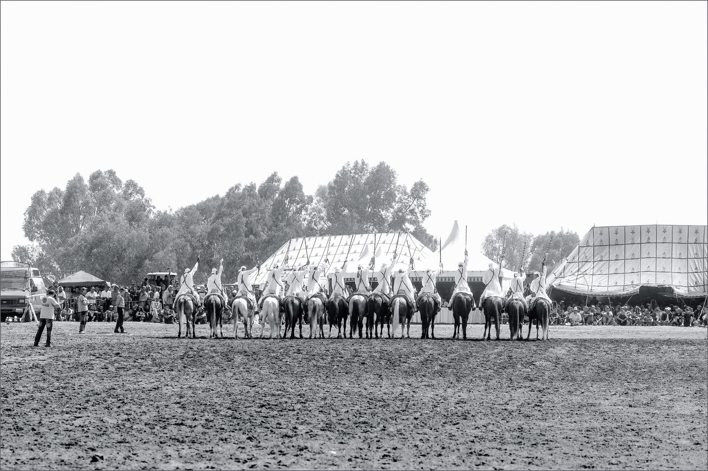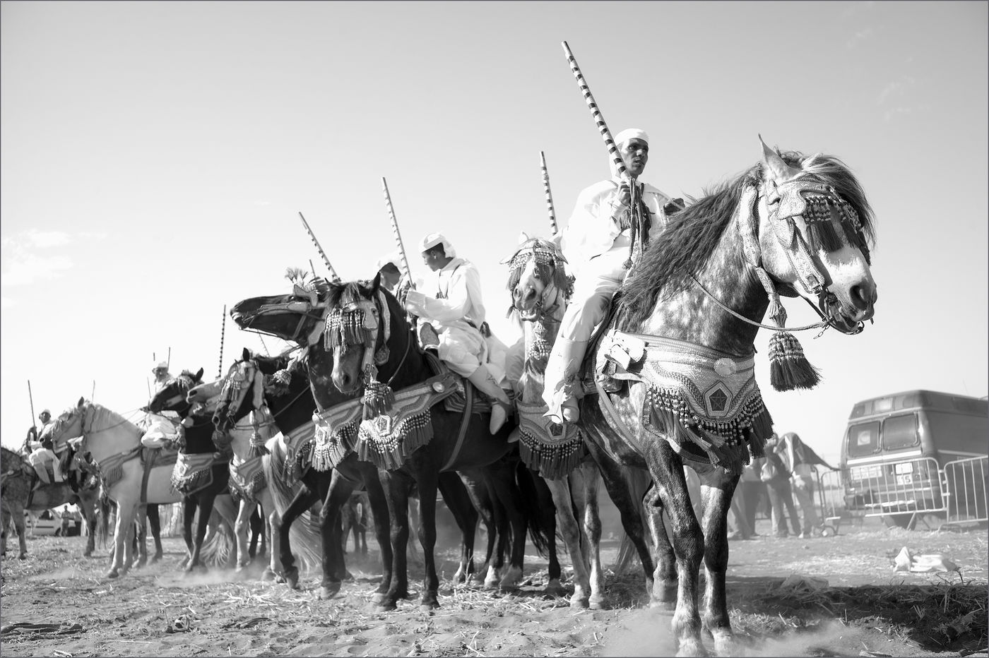 The photographs were taken during the Kenitra tbourida day on May 2, 2016, as part of the calendar of competitions organized each year throughout Morocco by the SOREC (Royal Society for the Encouragement of the Horse). "The competitions reward in particular the perfect alignment, the quality of the start, the behaviour of the riders, the harnessing of the horses, the art in the execution of the rifle game and the precision and simultaneity of the detonations carried out by each troop of tbourida (sorba) composed of 11 to 15 aligned riders. »