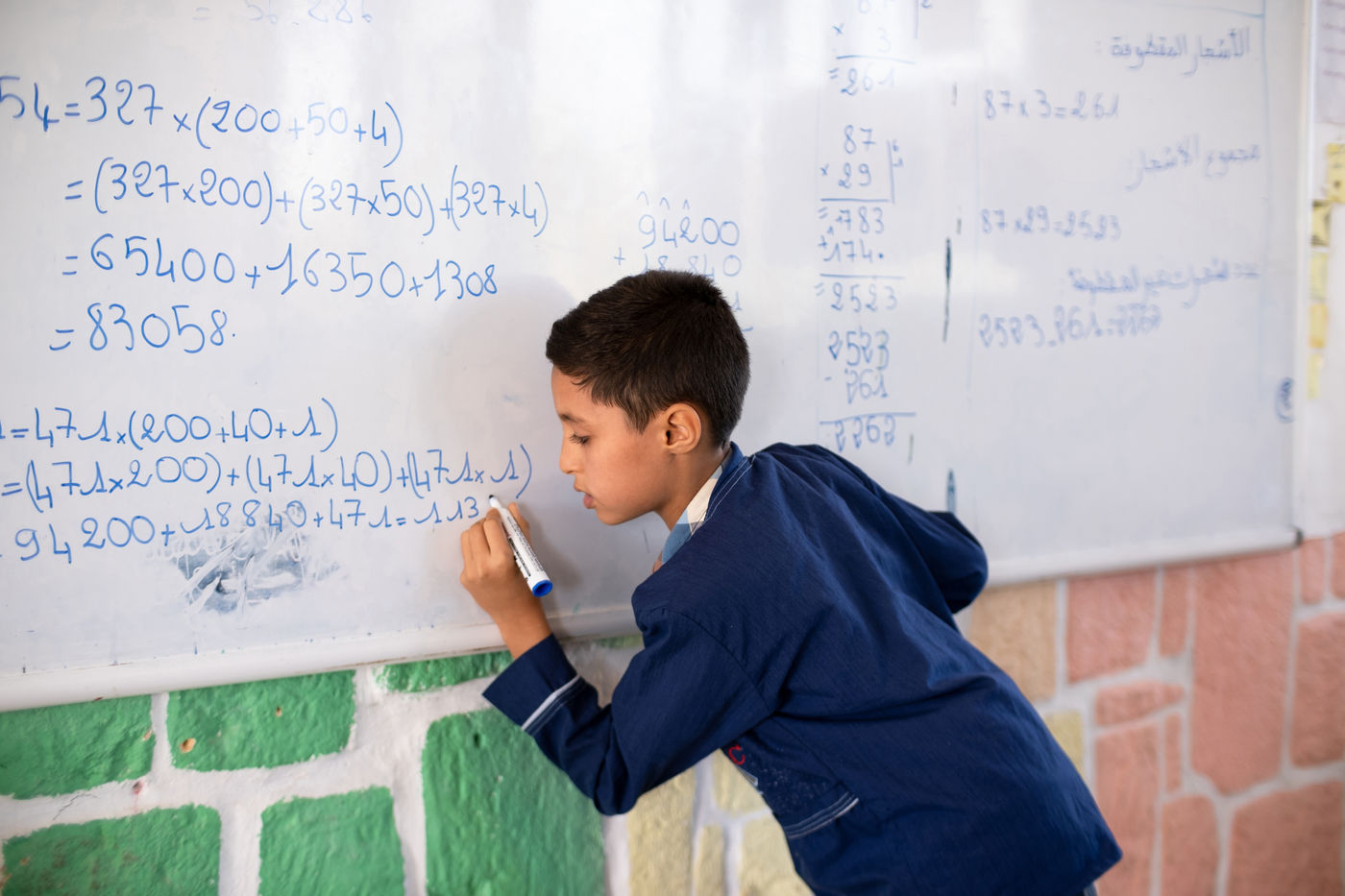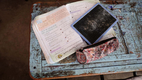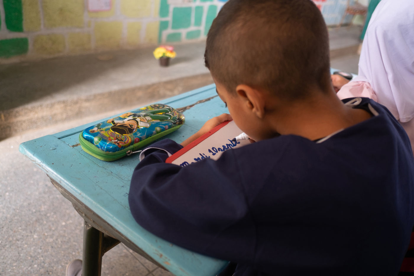 - and finally the images of children in action in the (very) colourful classrooms of the renovated schools.
