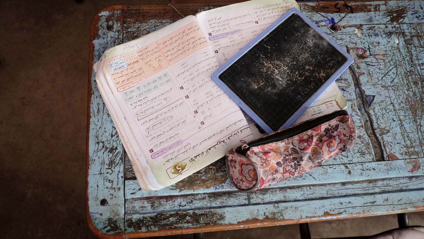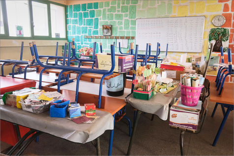 - the images which testify to the dilapidation of the facilities before renovation (the decision was taken to suggest the situation by showing the children's stuffs and their environment without showing them themselves)