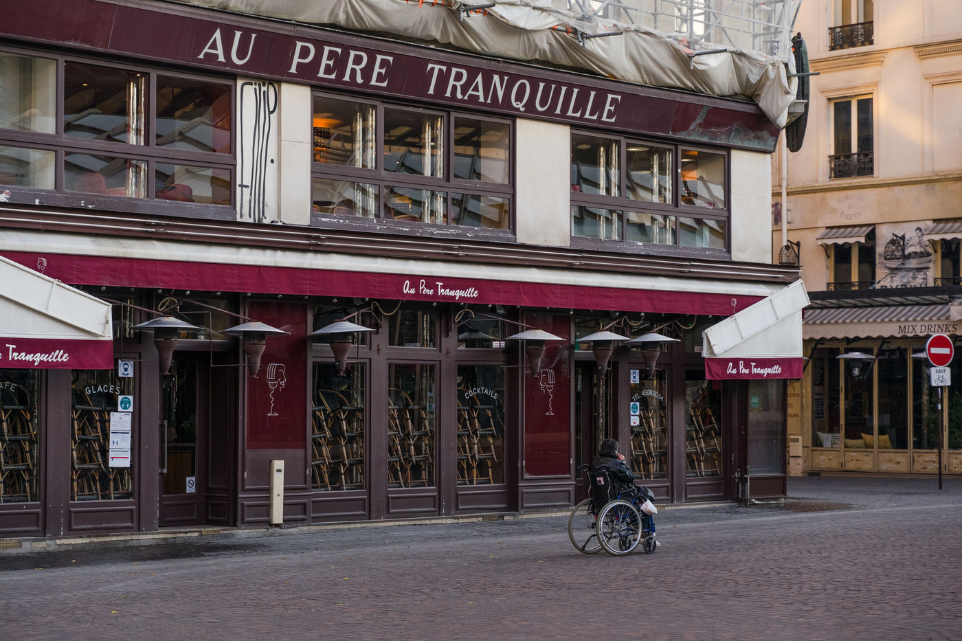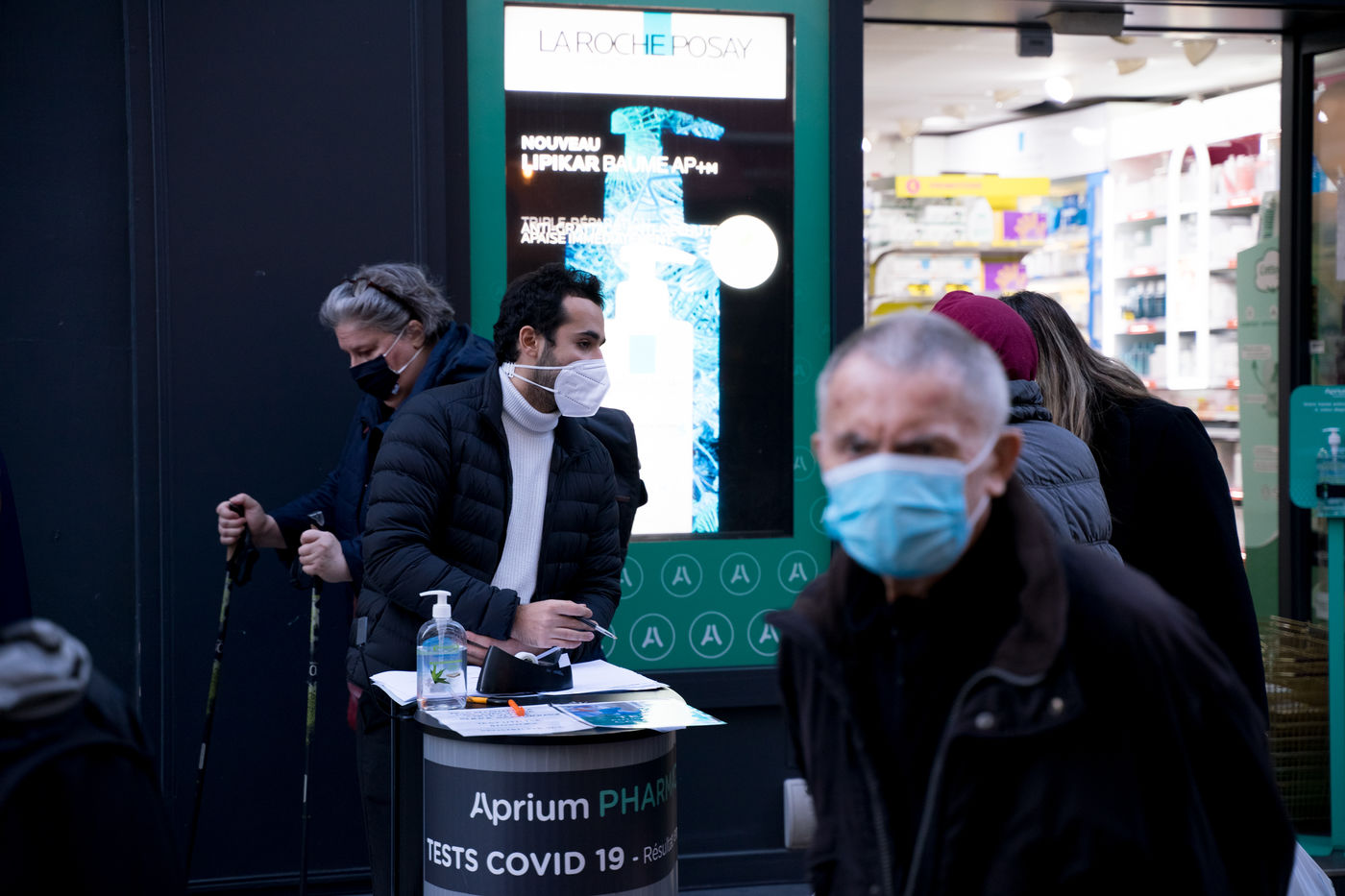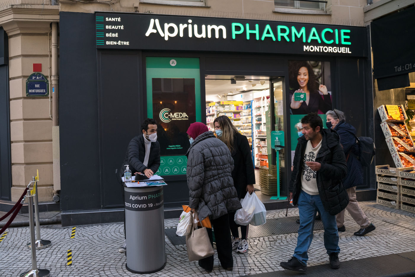 Although the measures are less radical, the streets are particularly empty, especially in tourist areas. Restaurant chairs are piled up, and police patrol the busiest areas. Only the most precarious, the homeless, the Uber Eats en Vélib delivery people, are present everywhere. On Rue Montorgueil, the pharmacy has set up a stand to be tested for the virus, further towards Beaubourg an elderly couple tries to find a book in a bookstore that practices "Click & Collect".