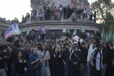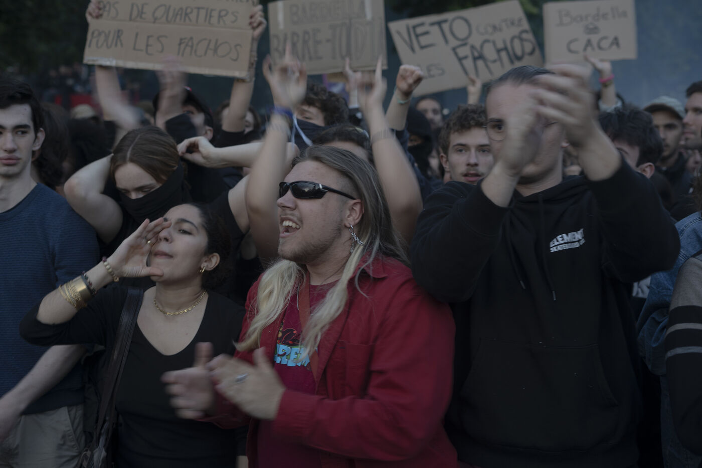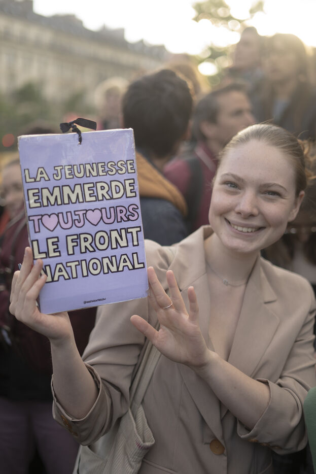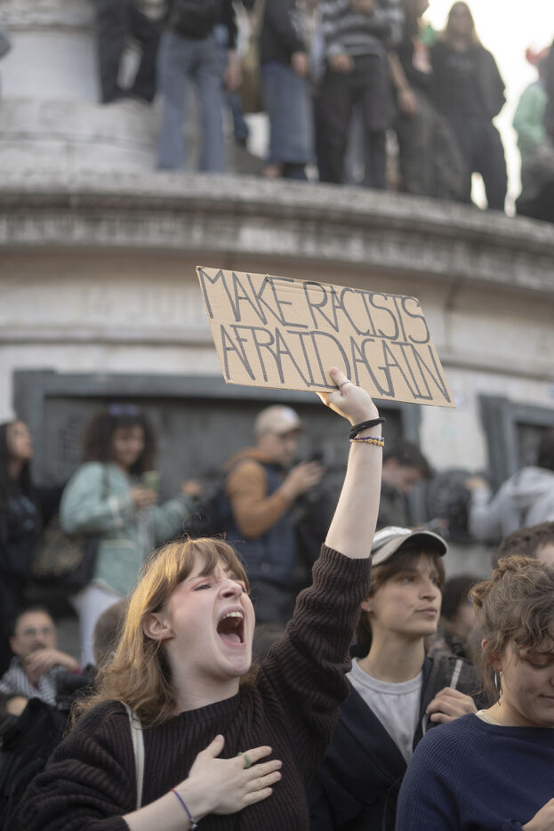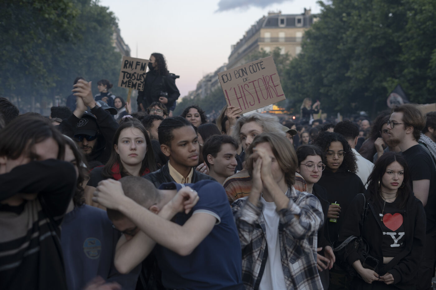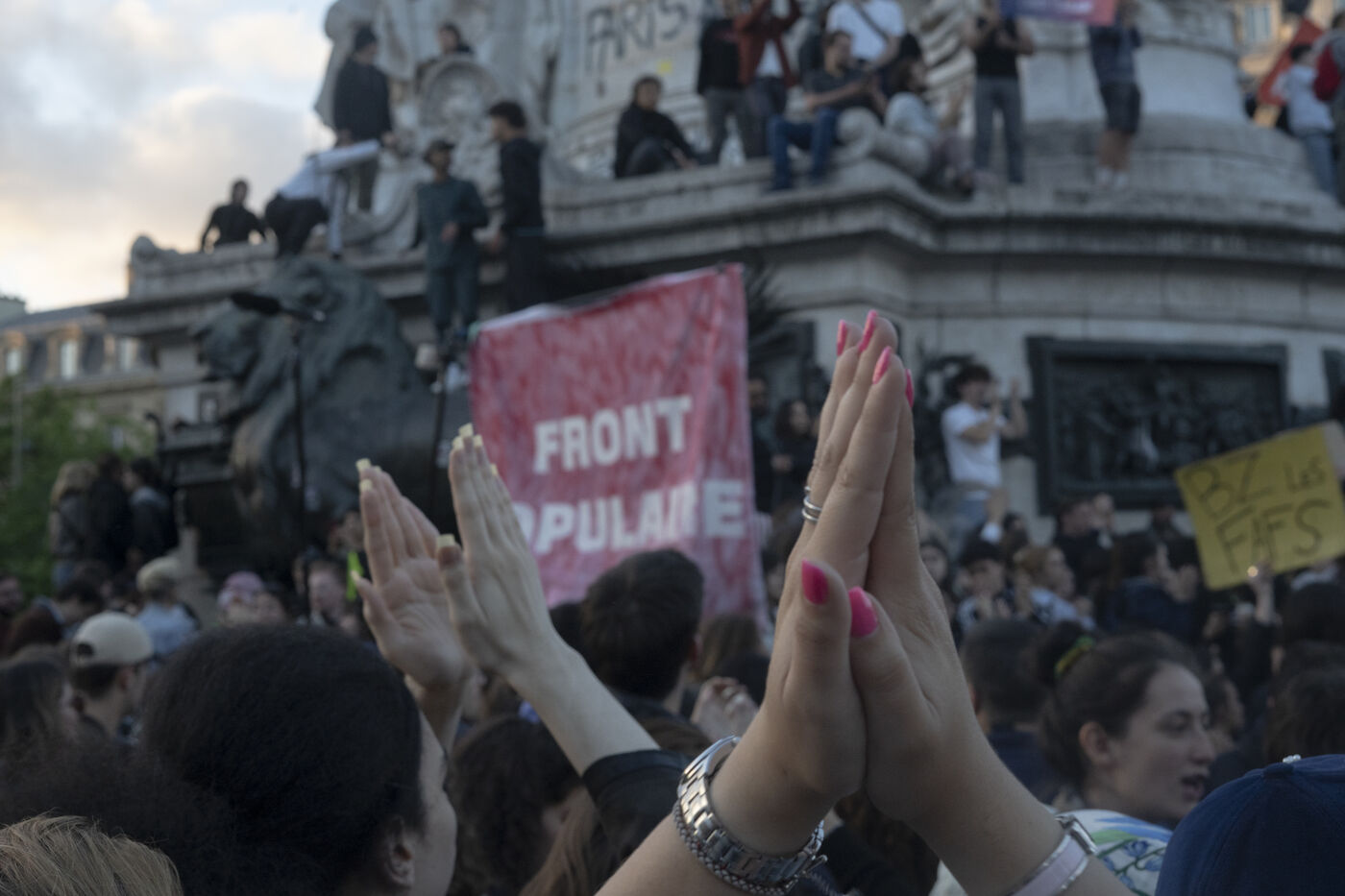 Paris, France. 2024-06-10. Plusieurs milliers de personne se sont réunies contre l'extrême-droite, place de la République, à Paris, au lendemain la dissolution de l'assemblée nationale.