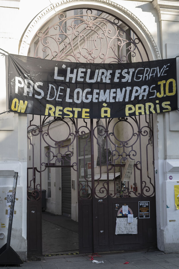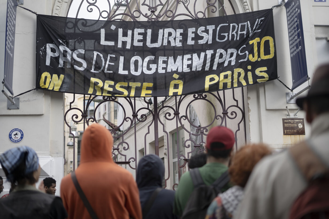 Plusieurs dizaines de personnes se sont rassemblées devant le lieu culturel occupé par les mineurs isolés, la maison des Métallos, à la veille de l'ordonnance d'évacuation, demandée par la ville de Paris. Paris, le 19.06.24