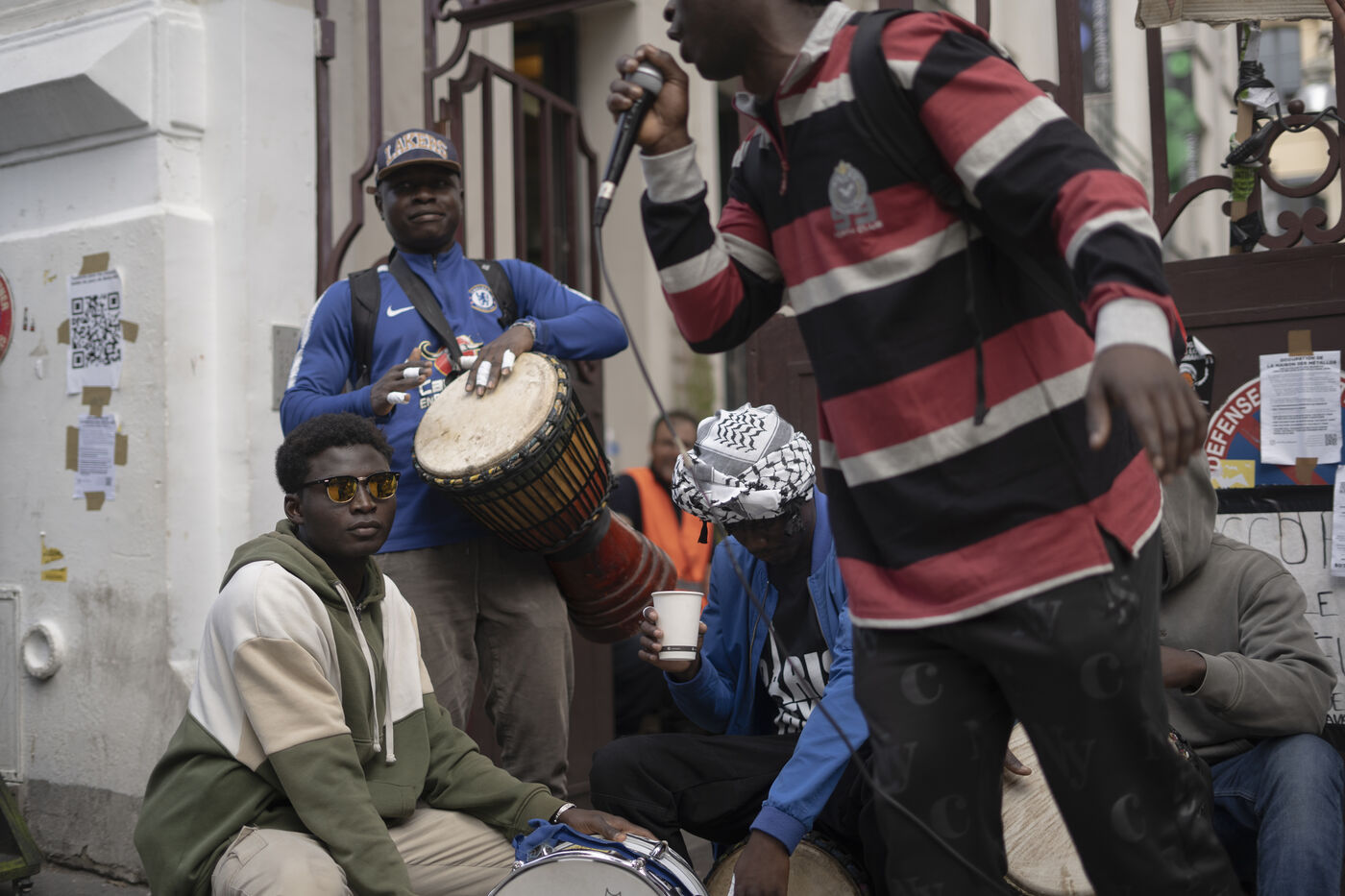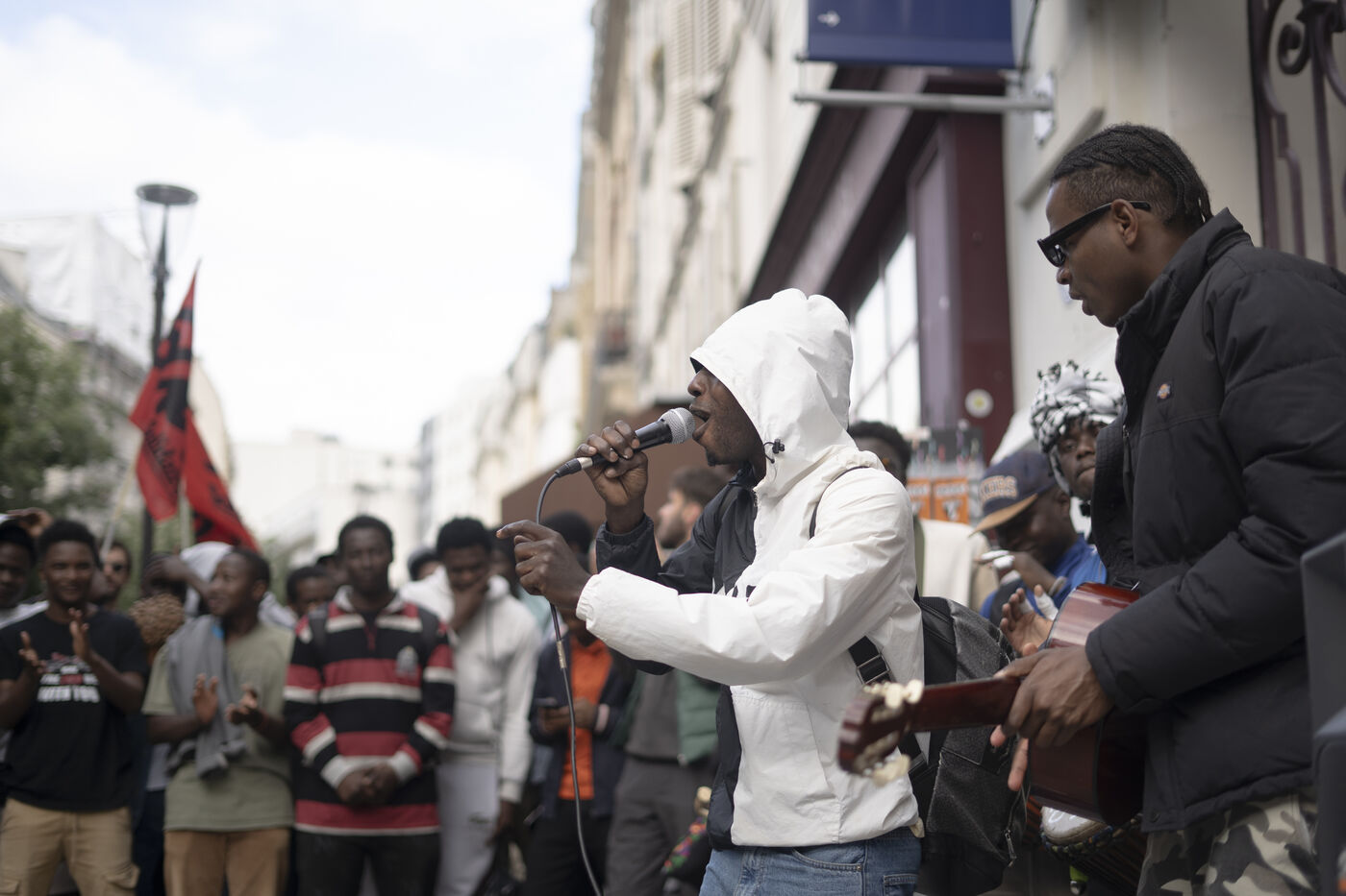 Several dozen people gathered outside the Maison des Métallos, the cultural venue occupied by the unaccompanied minors, on the eve of the evacuation order requested by the city of Paris. Paris, 19.06.24