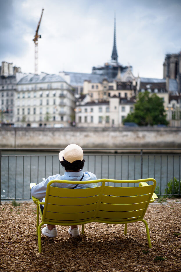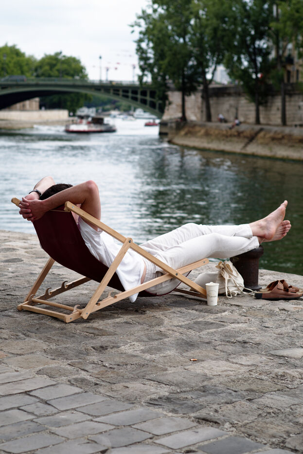 Ile de la cité - Paris - France, Paris Plage welcomes Parisians and tourists young and old for a moment of relaxation in the sun on the banks of the Seine.