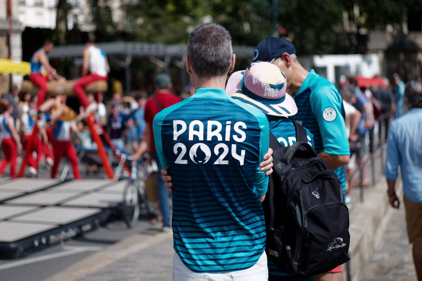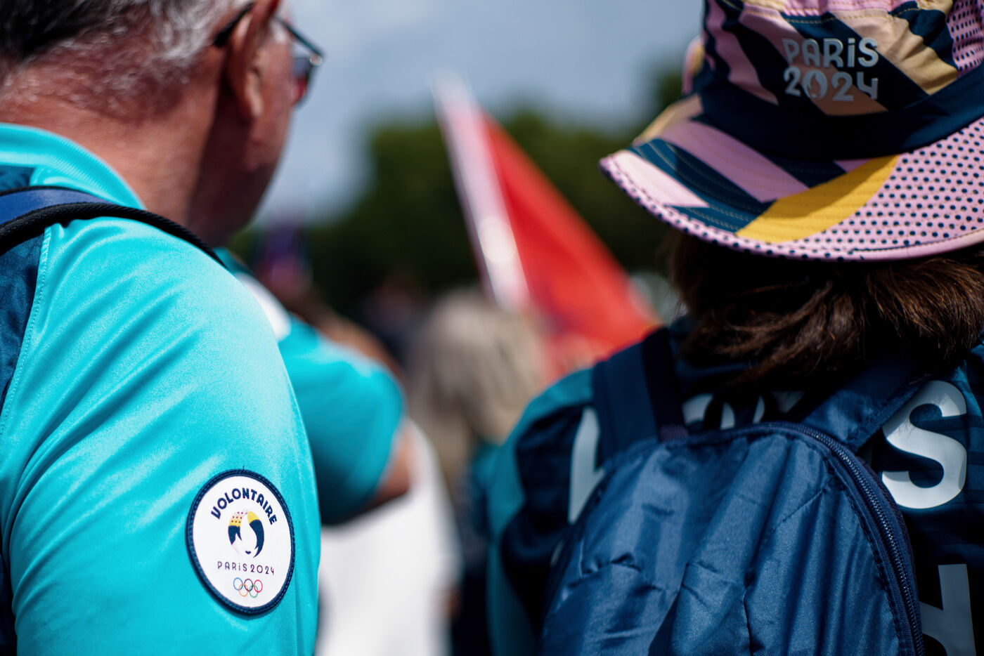 Tour Eiffel - Paris - France, rassemblement des volontaires pour un grand défilé aux couleurs olympiques un an après la cérémonie d’ouverture des JO 2024.