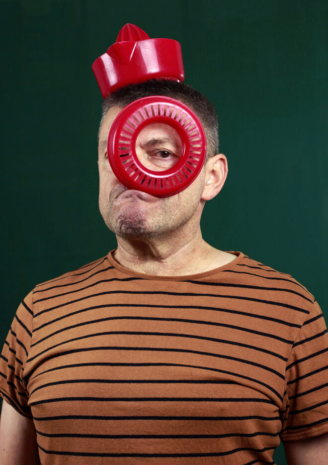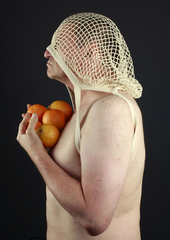 Fascinated by the mystery of each face, I used mine as a tool in the elaboration of these self-portraits. Like a "return from the market" menu when the cook is guided by the products bought, I concocted each image starting from the reality of the object collected. No fixed ideas at the beginning of the construction of the image but a research, a trial and error and multiple tests. I worked alone, without seeing exactly what I was photographing, I did not use a control screen, when I pressed the radio remote control to trigger, I left room for chance and the unexpected. I was often surprised, even frightened, by the result.