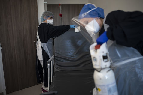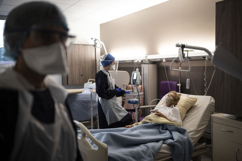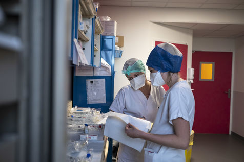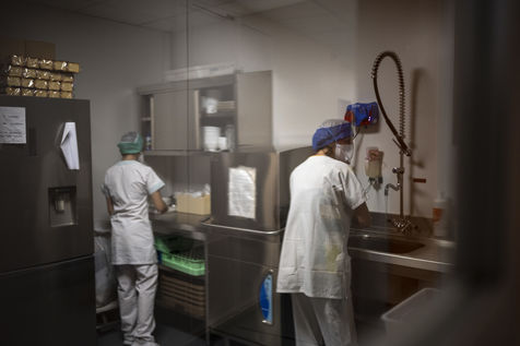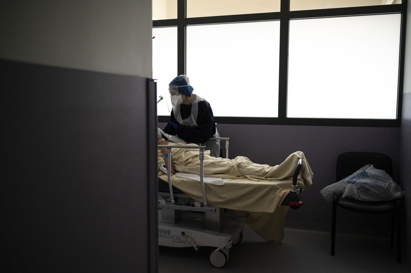 Si l'attention est focalisee sur les capacites en lits de reanimation, de nombreuses autres personnes sont hospitalisees dans des conditions moins critiques mais aussi difficiles. Les visites ne sont autorisees que lorsque la mort semble s'approcher de trop pres. On retrouve aussi celles et ceux qui ne peuvent pas etre accueillis dans les services de soins intensifs à cause de leur sante trop fragile. Reportage en « service Covid » a l'hopital d'Annonay, au coeur de la region Auvergne-Rhone-Alpes. Jean est en train d'etre prepare pour sa seance de dialyse.