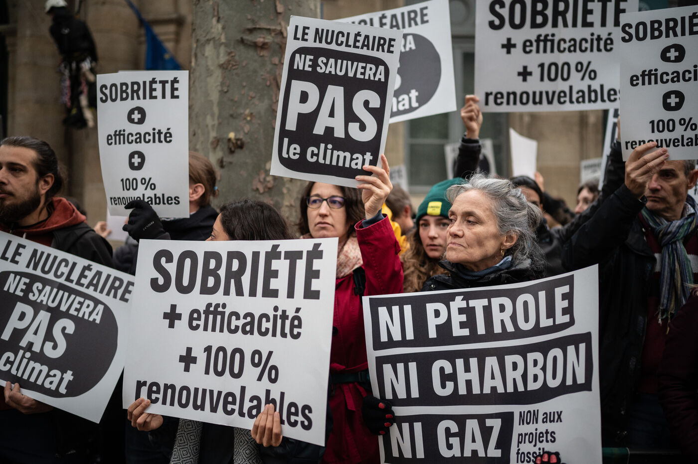 Environ 200 militants de huit mouvements écologistes (dont ANV-Cop21, Greenpeace, Extinction Rebellion, Alternatiba, Dernière Rénovation...) ont bloqué symboliquement l'entrée du ministère de la transition écologique, rebaptisé "ministère de la trahison écologique" pour l'occasion, en réaction aux annonces gouvernementales jugées "hors-sol" sur la planification écologique.