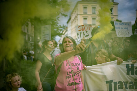 Festive demonstration ?for a future without PFAS? in Oullins-Pierre-Bénite, co-organized by the PFAS contre Terre residents' collective and thirteen other movements. In the firing line were two industrial companies based in the commune: Arkema and Daikin, accused of polluting the region with their perfluorinated emissions.
