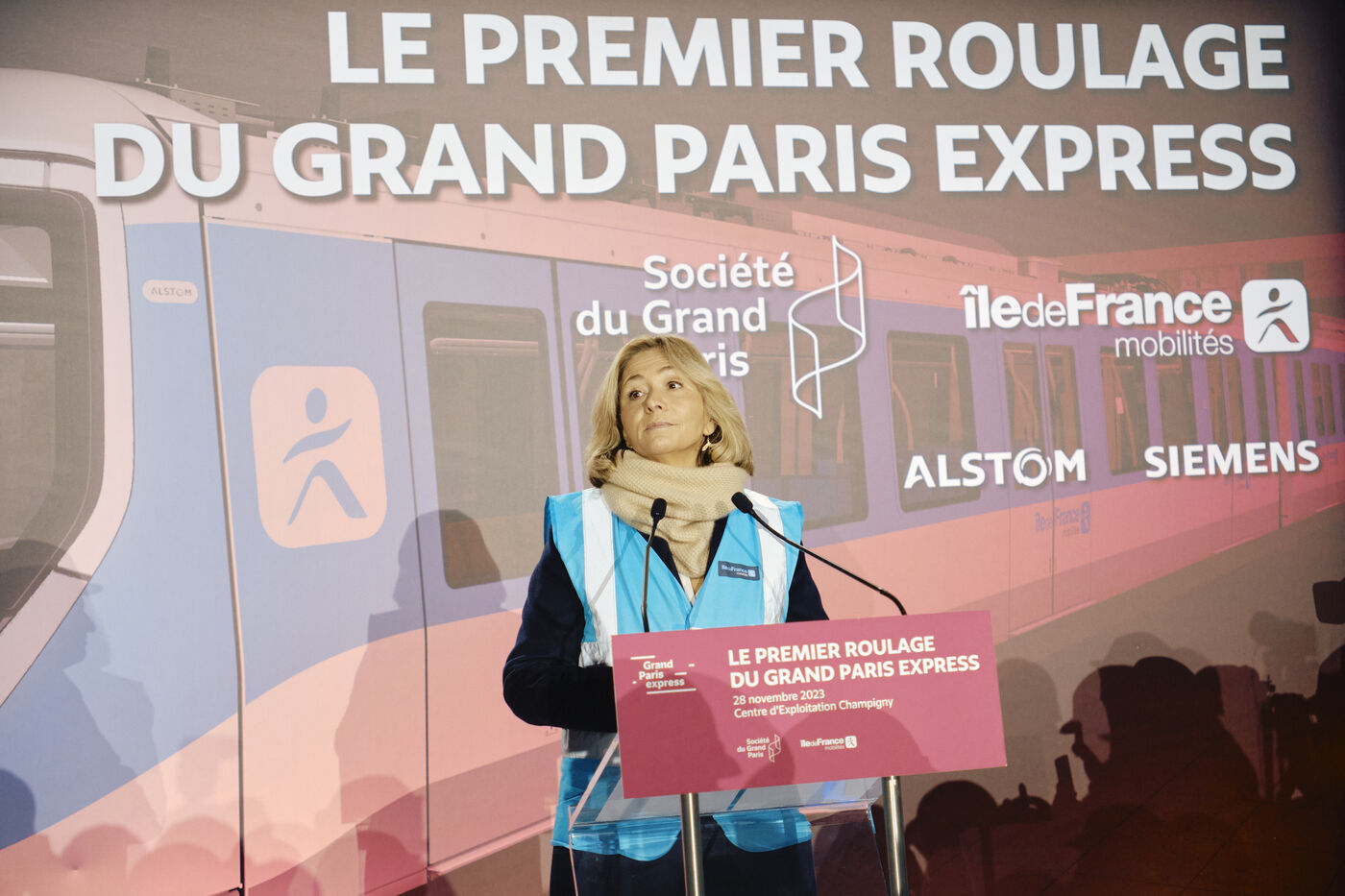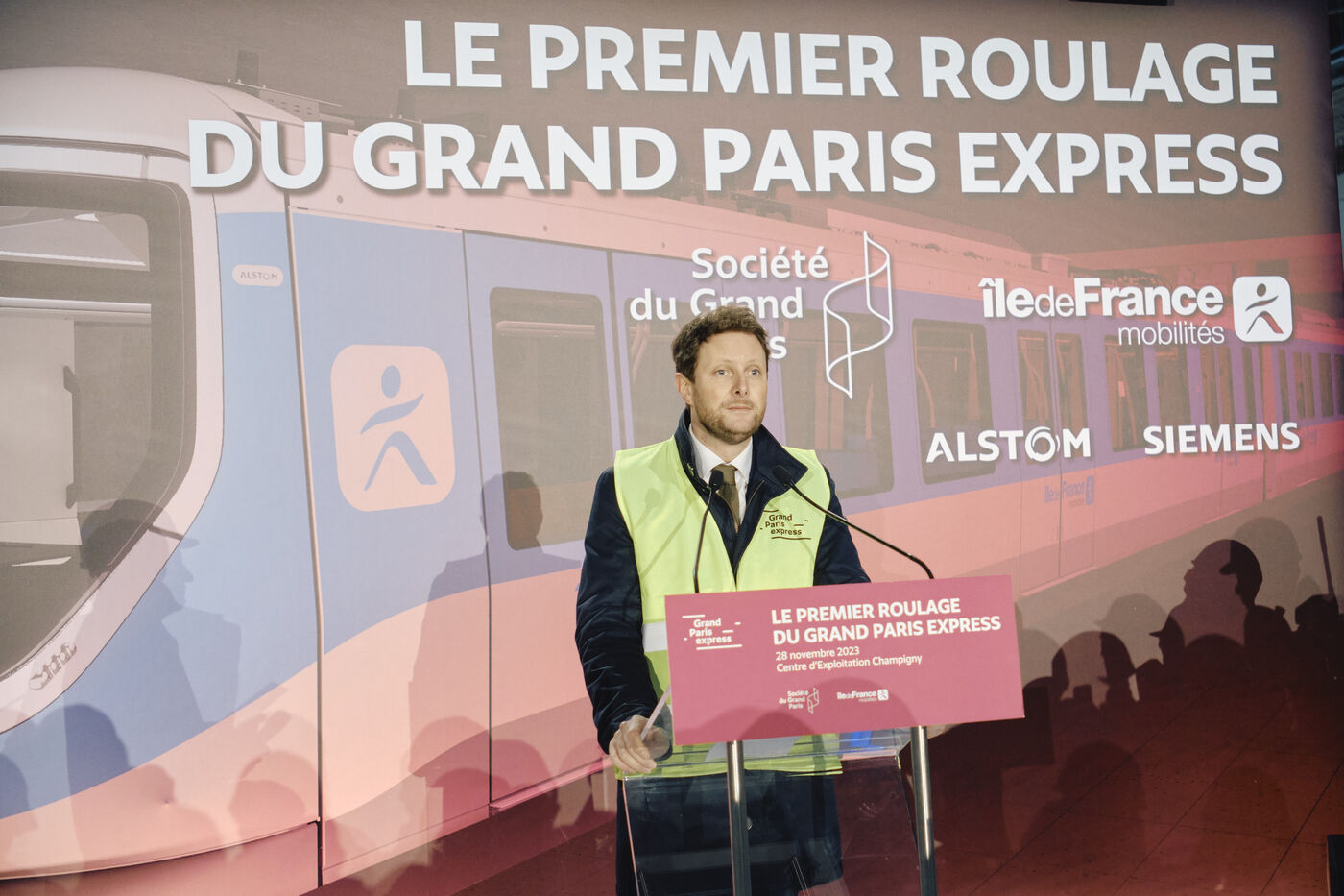The first train (Line 15 Sud) of the Grand Paris Express runs in the presence of Clement Beaune, Minister Delegate for Transport and Valérie Pecresse, President of Ile de France Mobilités at the Champigny Operations Centre.