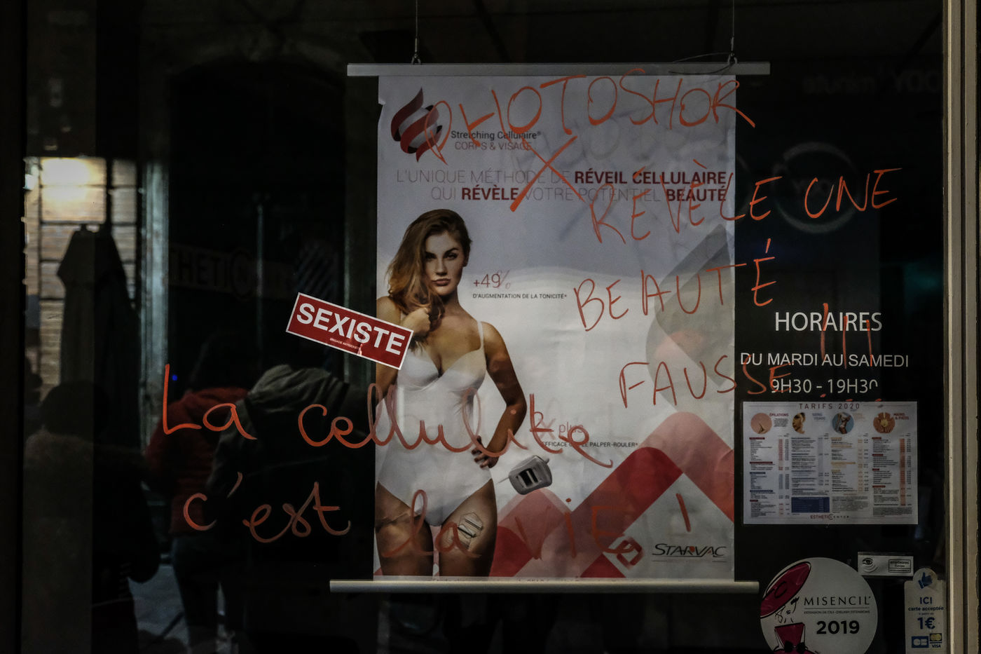 Collectif feministe luttant contre la publicite sexiste dans l espace public. la Brigade Antisexiste a encore frappee dans les rues de Toulouse. La BAT denonce les publicites sexistes qui sevissent dans les vitrines de magasin. SEXISTE !