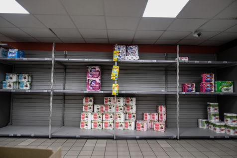 In the shops, basic necessities are taken by storm, leaving the shelves empty and ransacked. Paws, rice, sugar, flour, egg, milk, household products, toilet paper.