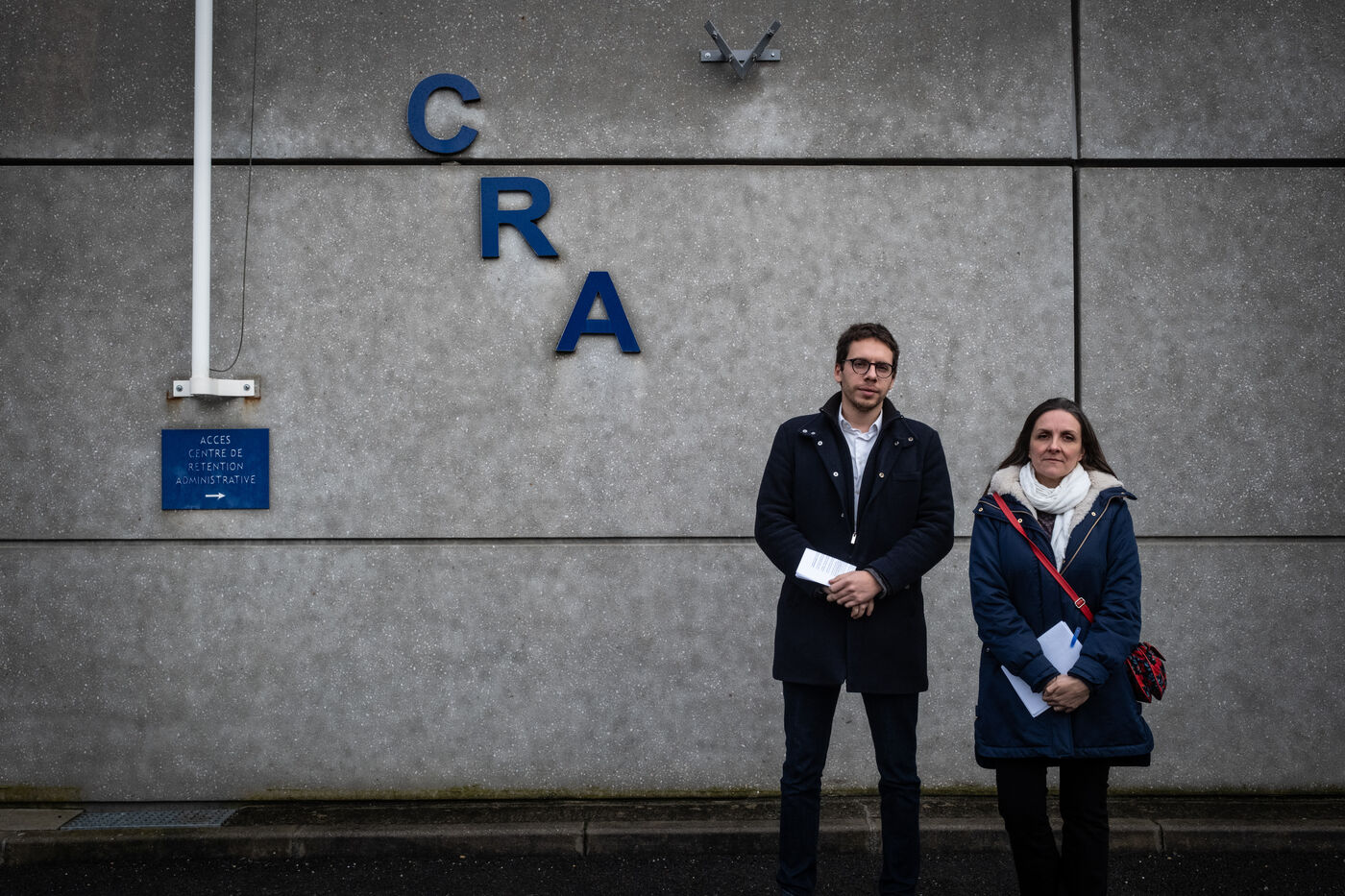 Visite du Centre de Retention Administrative de Toulouse Cornebarrieu par les deputes de La France Insoumise (LFI) Hadrien Clouet et anne Stambach-Terroir.