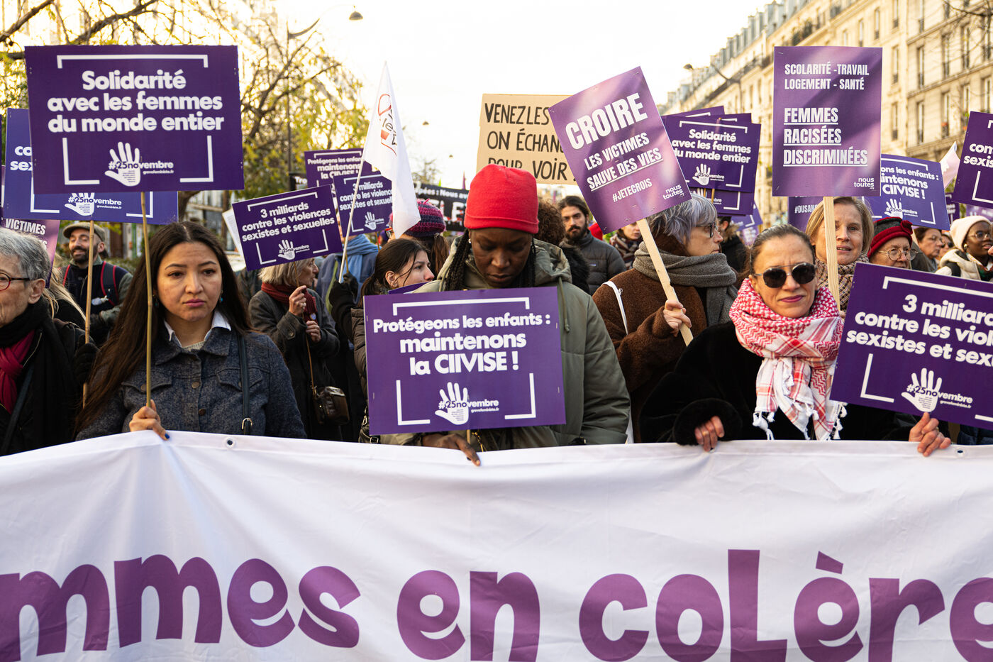 Plusieurs milliers de personnes ont manifesté samedi à Paris et dans plusieurs grandes villes à l'occasion de la Journée internationale contre les violences faites aux femmes
