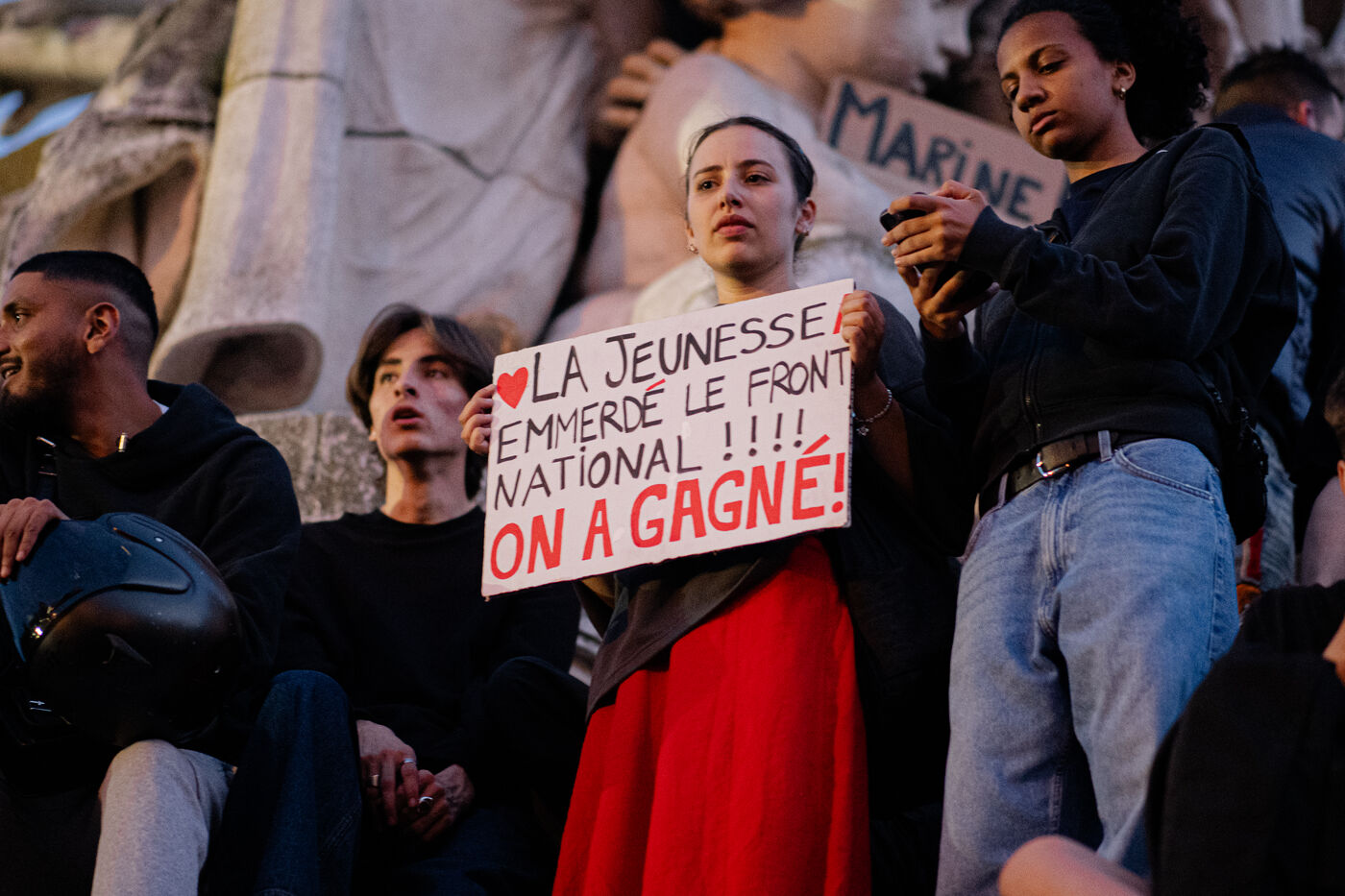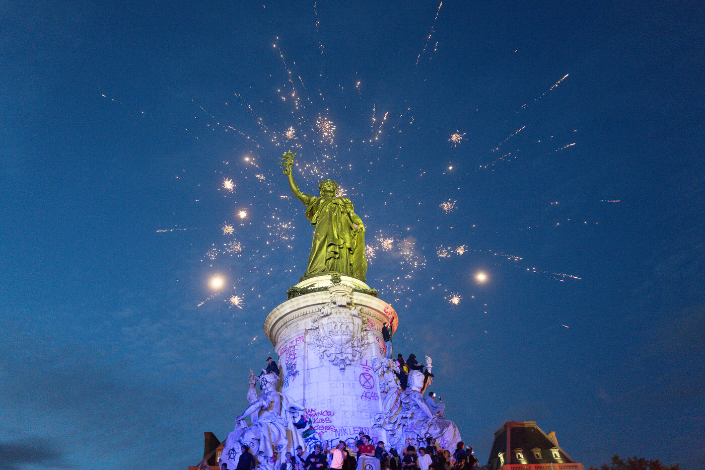 Rally to celebrate the result of the legislative elections in Paris. Thousands of people gathered in Place de la République to celebrate the defeat of the RN. Tensions erupted in the evening, and the situation deteriorated further around 11pm.