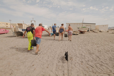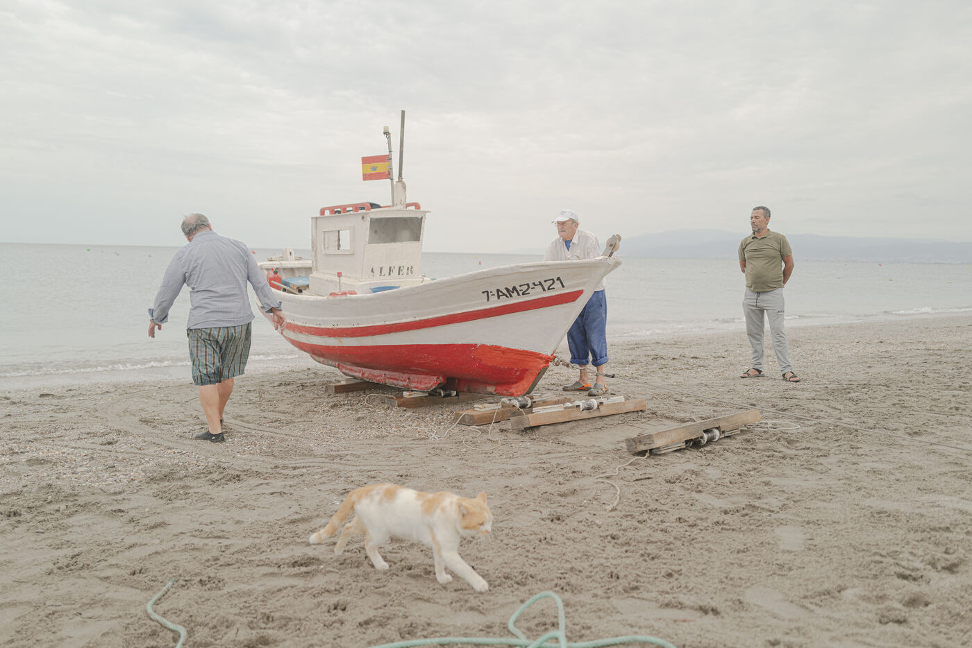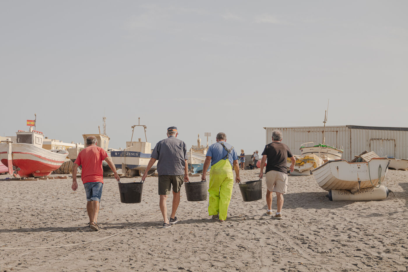 The fishermen of Cabo de Gata only sleep when there's a westerly Poniente wind. Cabo de Gata, a small village in Almeria, triples its population in summer, but in winter everyone knows everyone else. They are the 5th generation of fishermen, and their fishing methods are the same as those of their parents in the 40s and 60s.The main problem with fishing is trawling,but their methods allow them to fish in deep water without damaging the environment. Unlike trawlers, which waste resources and ravage the seab