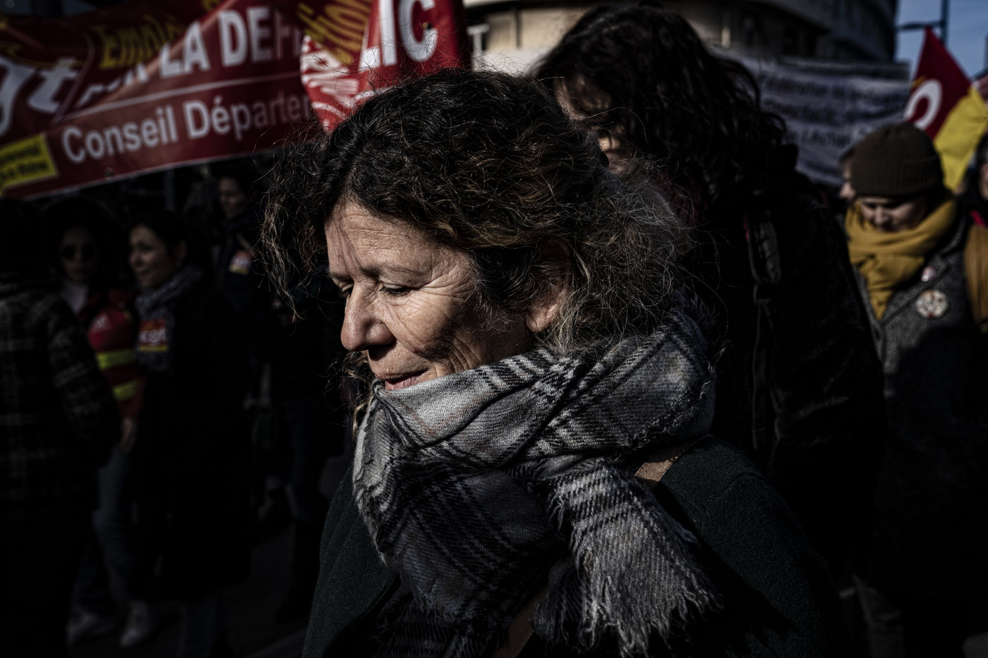 Le mercredi 29 janvier 2020, les gens manifestent à Marseille contre la réforme des retraites. Ils sont moins nombreux qu'à la dernière manifestation. Malgré le soleil, l'ambiance est moins festive, la lassitude se fait sentir. Les médias ne parlent pas beaucoup de la manifestation.