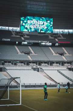 A l'occasion de la sortie de la collection de vêtements du footballeur Kyllian Mbappé « Bondy x Nike », le footballeur a fait la surprise de sa venue aux jeunes joueurs de Bondy au Stade de France.