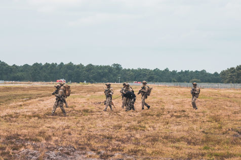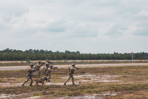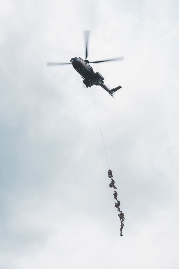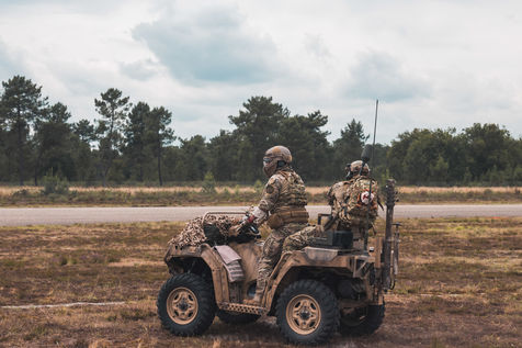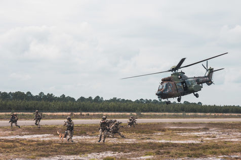 Démonstration des dragons parachutistes du 13eme RDP pendant Le séminaire du réseau d'innovation des forces d'opérations spéciales (SOFINS) à Martignas-sur-Jalle, dans le sud-ouest de la France.