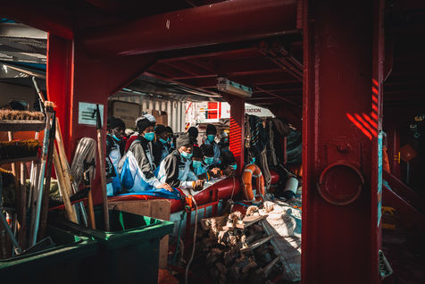 Poussés par la détresse ils prennent tous les risques, espérant être secourus par différentes ONG Européennes au milieu d'une mer impardonnable.