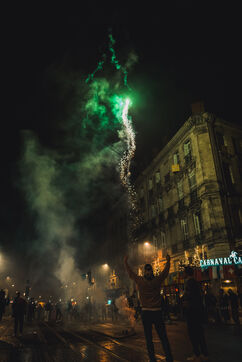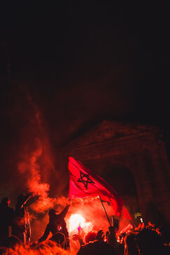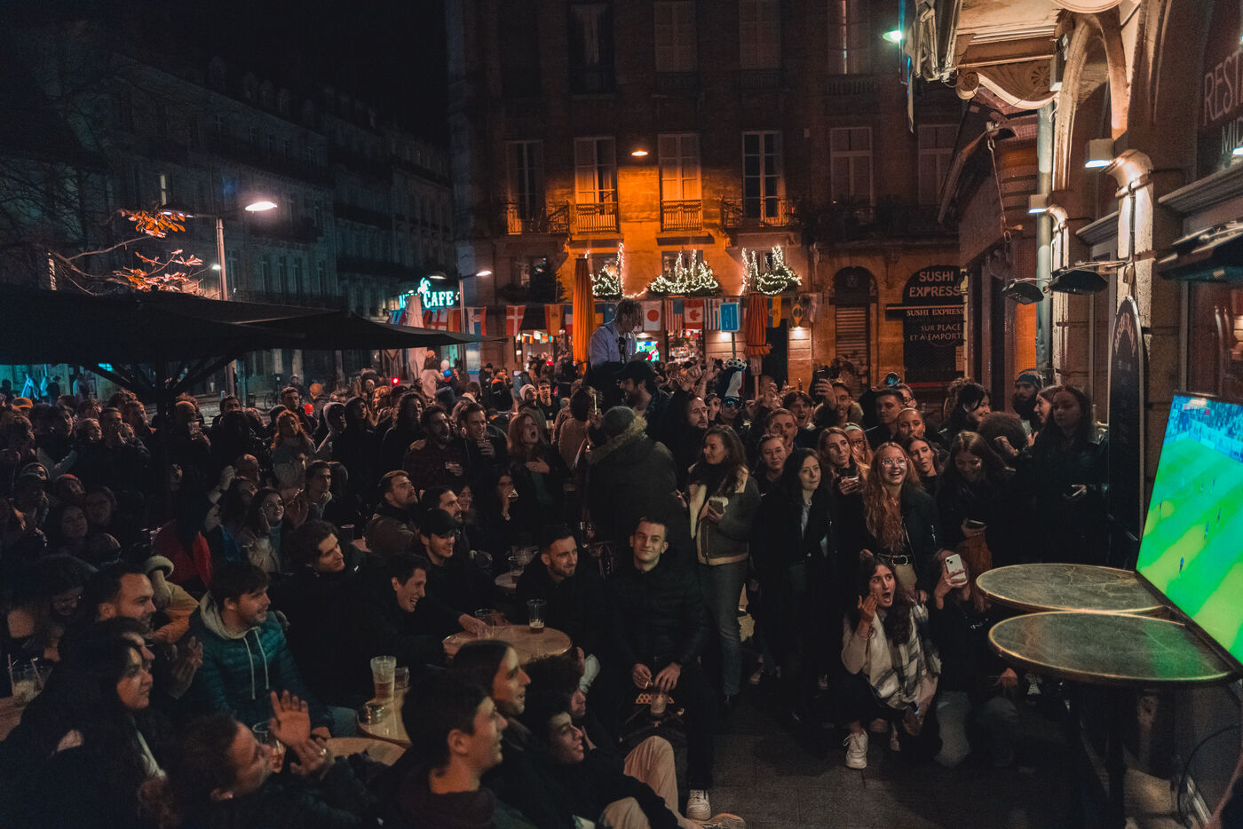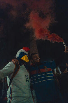 Semi-final match of the World Cup 2022 France Morocco. The fans celebrate the victory of France despite the disappointment of the Moroccan side. December 14, 2022, in Bordeaux.