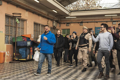 Presidential pre-candidate Juan Grabois on his way to cast his vote.