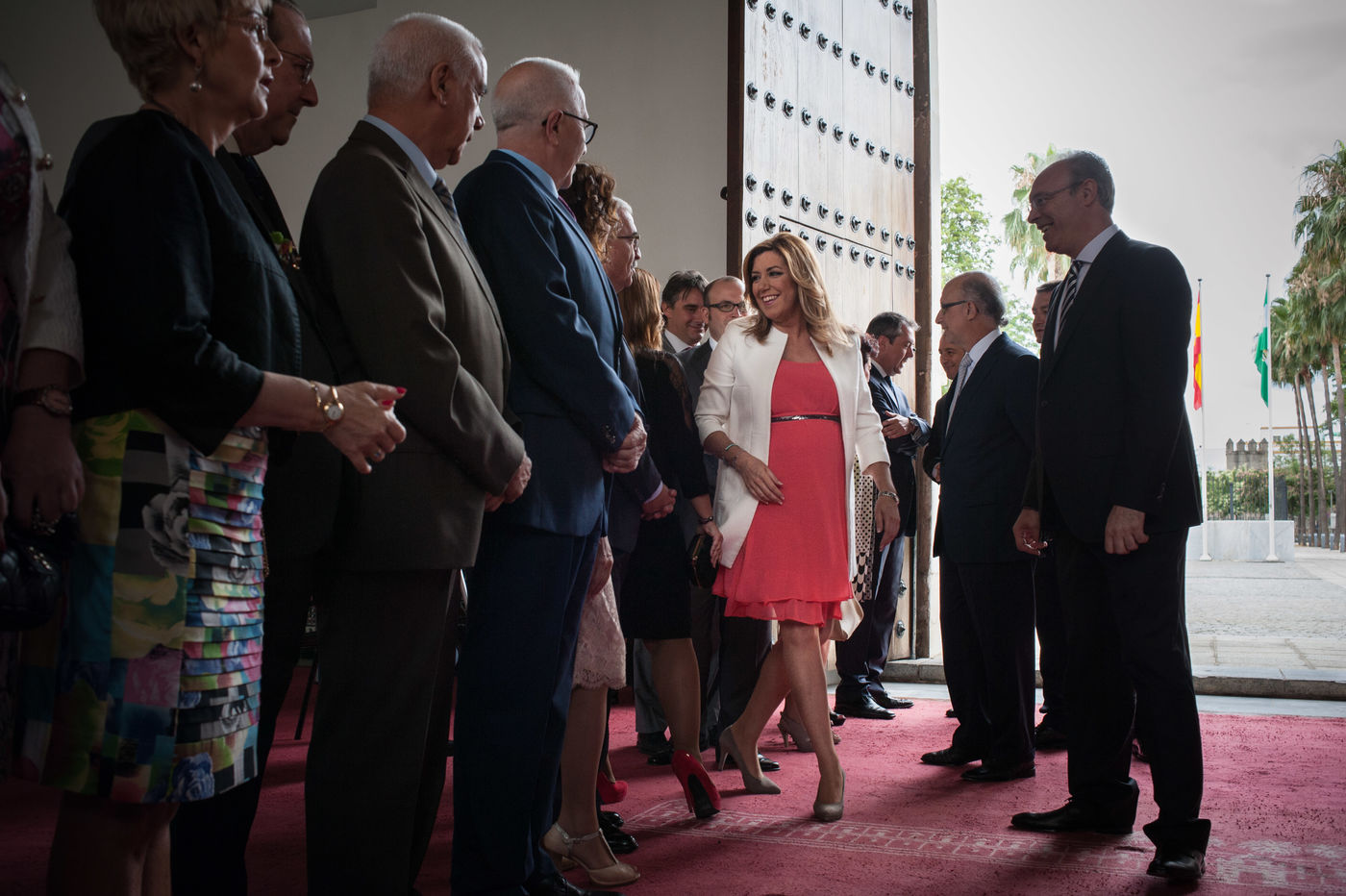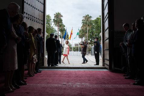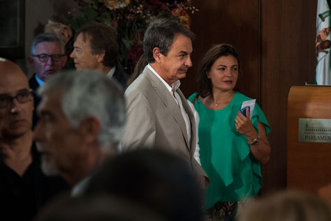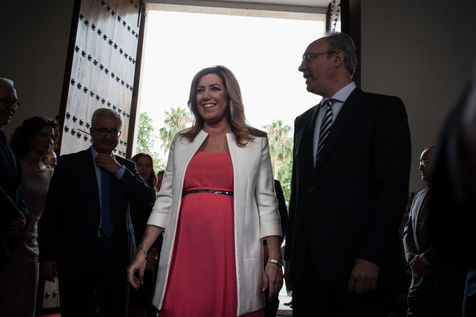 Investiture de la présidente de la région autonome d'Andalousie, Susana Diaz, en présence de l'ex-premier ministre espagnol José Luis Rodriguez Zapatero et du nouveau leader socialiste Pedro Sanchez. Numéro deux du PSOE (parti socialiste Espagnol), Mme Diaz est réelue pour un second mandat à la tête de l'Andalousie (historiquement trés encrée à gauche), malgré de nombreuses critiques et accusations de corruption et conflits d'intêret et un chômage dans la région qui frôle les 27%
