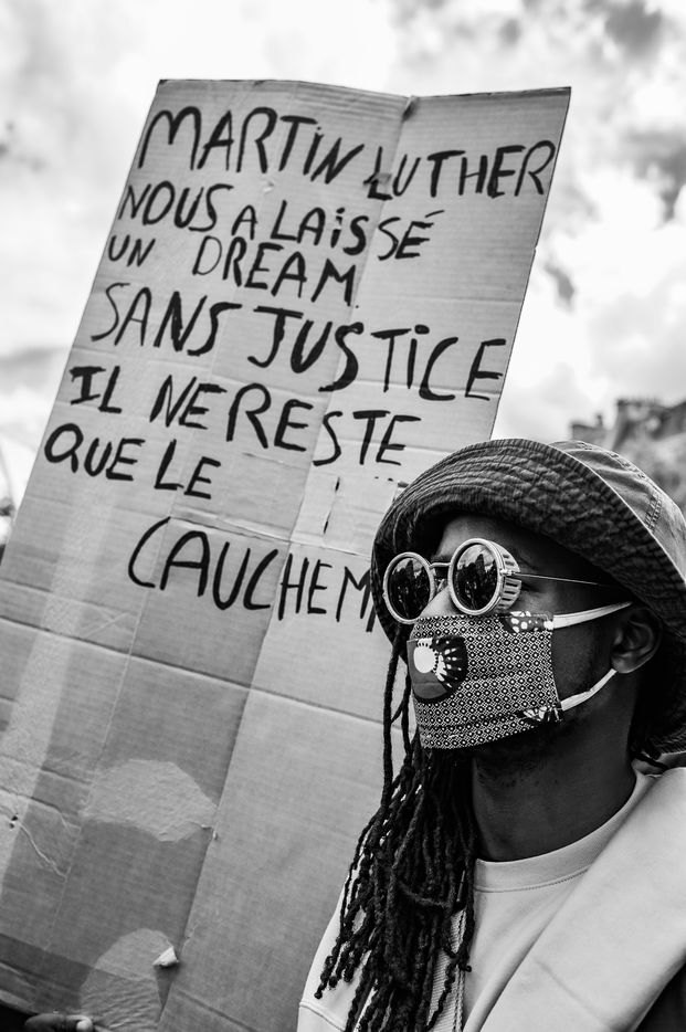 At the call of Adama Traore's family and several anti-racism associations, tens of thousands of people gathered in Place de la République to denounce police violence and racism against black people and people of colour in France. Paris, 13 June 2020.