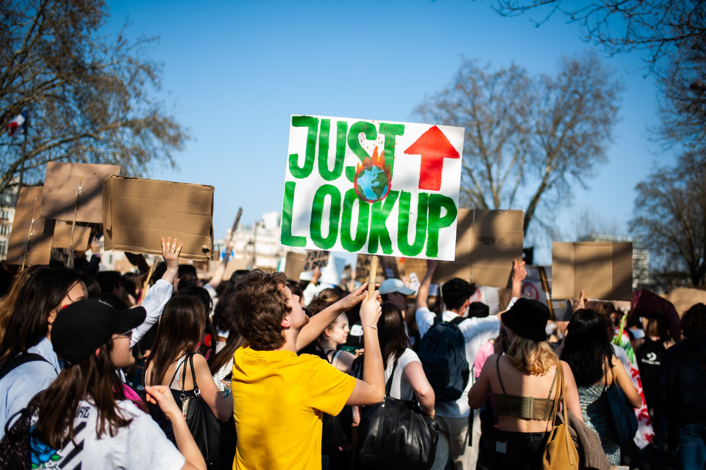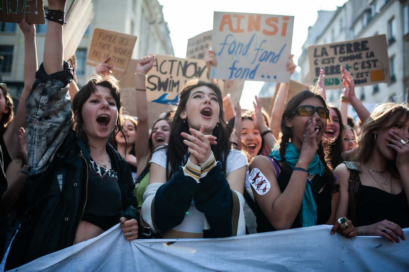 France, Paris 25/03/2022. Thousands of students marched to protest against climate change and take up the Friday For the Future movement, initiated by environmental activist Greta Thunberg. Photographs by Benjamin Mengelle / Hans Lucas.