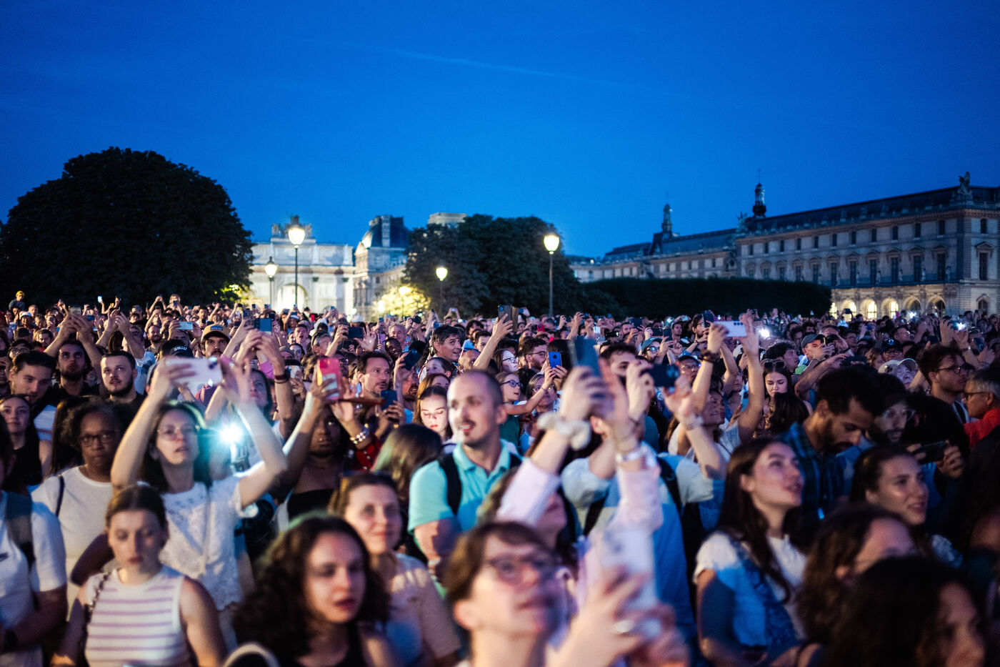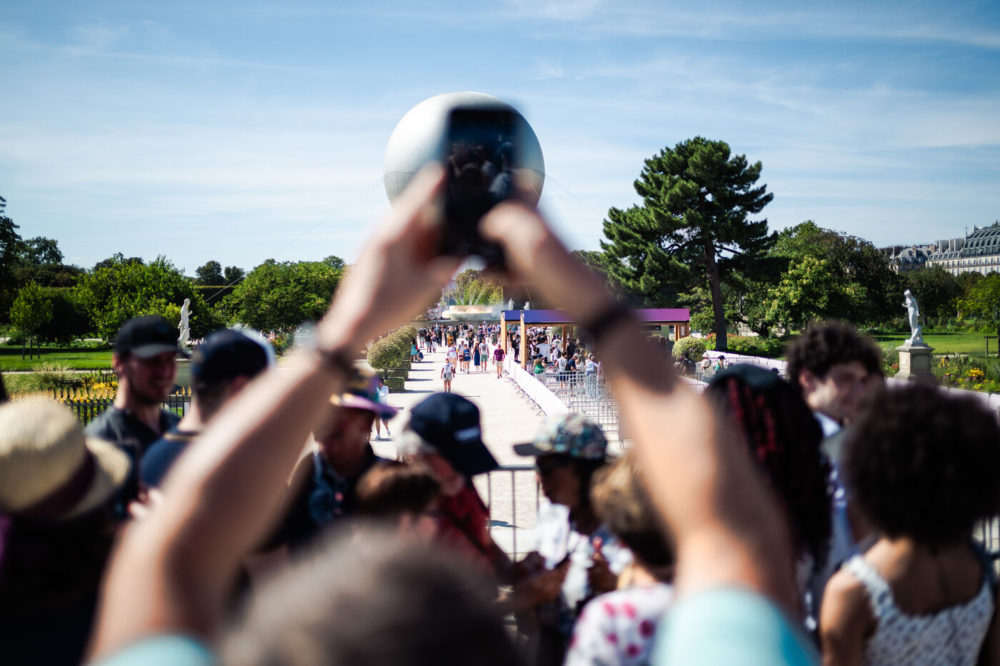 Une journée devant la vasque olympique, où beaucoup de monde se réunit le soir pour voir s'envoler la vasque olympique.