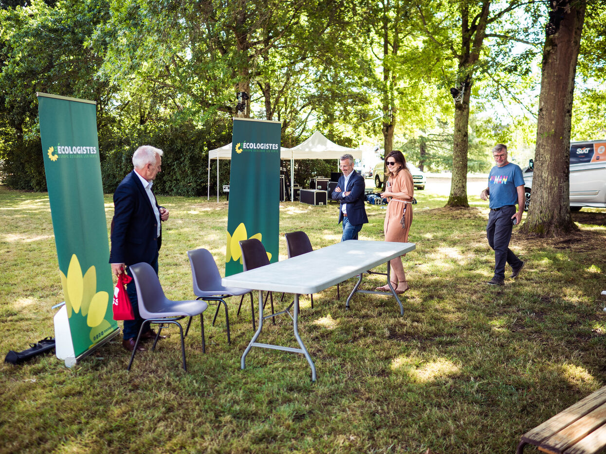 Conférence de Presse EELV pour les Journées d'été. Les Journées d'été ont lieux sur l'Ile Balzac à Tours du 22 au 24 aout 2024.