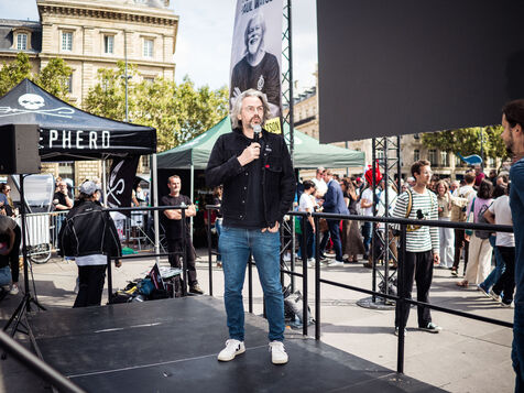 Rassemblement pour Paul Watson place de la République pendant l'audience par la Cours du Groenland.