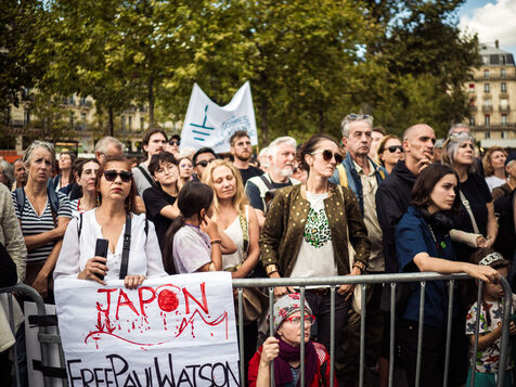 Rally for Paul Watson at Place de la République during the Greenland Court hearing.