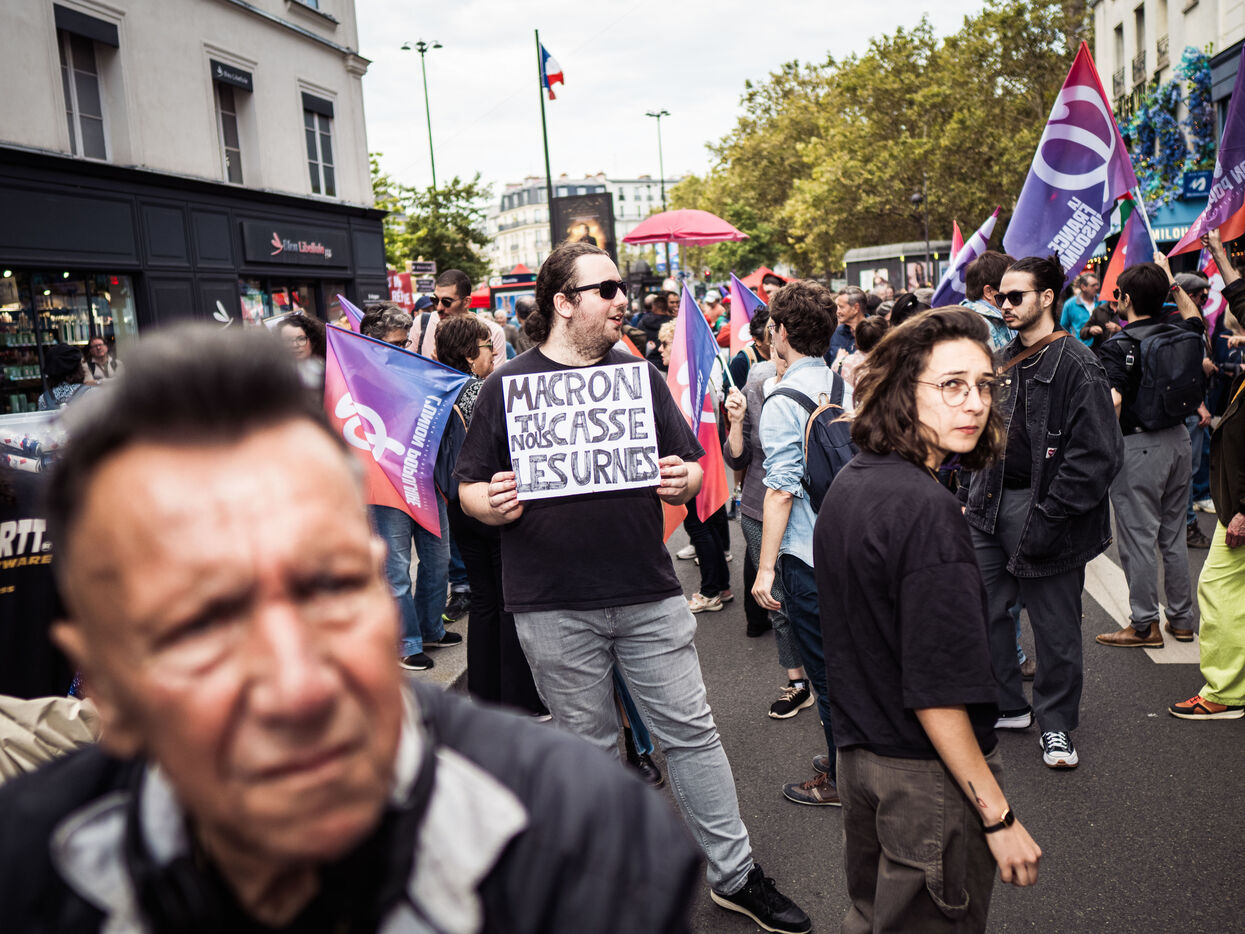 Manifestation pour la destitution de Macron le 21 septembre 2024 a l'appel de La France Insoumise et d'autre organisation de gauche.