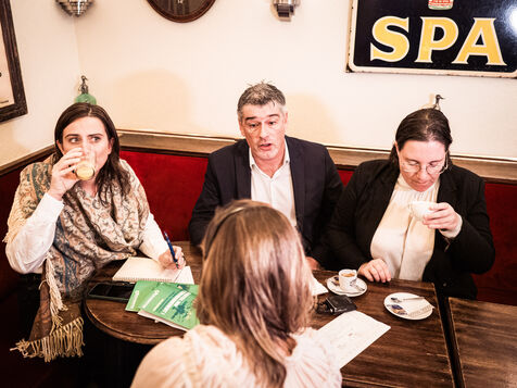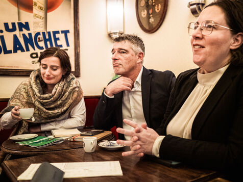 Micro tendu avec Marine Tondelier, Cyrielle Chatelain et Guillaume Gontard après une rencontre avec le premier ministre. Ce micro tendu devait avoir lieux devant l'Hôtel de Matignon mais il a été déplacé dans un bar a cause de la pluie.