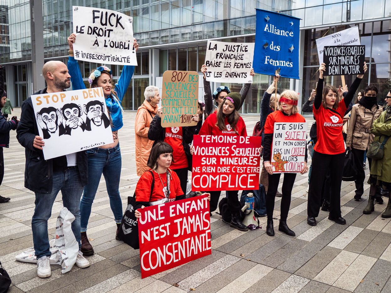 Rassemblement en soutien aux victimes de violences sexuelles devant le palais de justice, porte de Clichy.