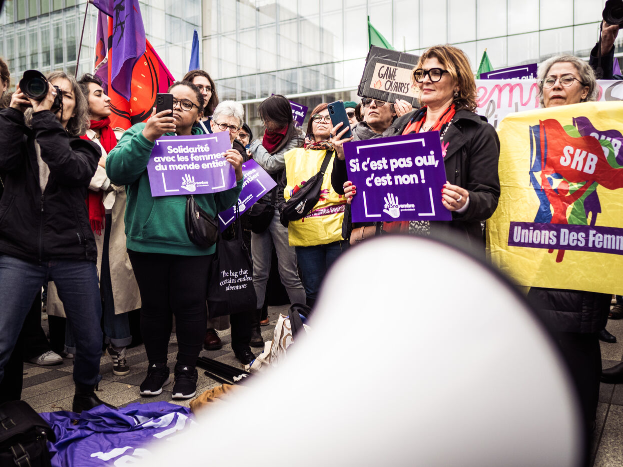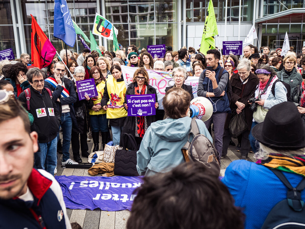 Rally in support of victims of sexual violence in front of the Palais de Justice, Porte de Clichy.