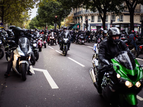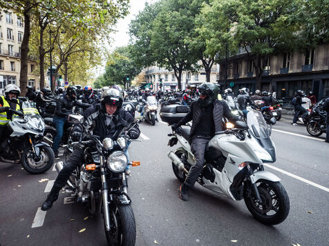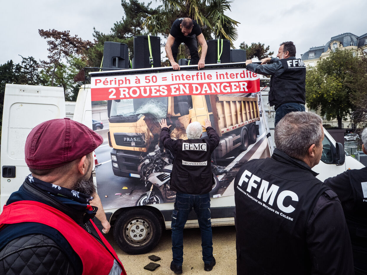 FFMC (Fédération Française des Motards en Colère) demonstration against the 50km ring road. From avenue Foch to Hôtel de Ville via the northern ring road.