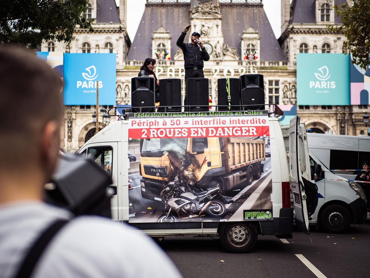 Manifestation de la FFMC (Fédération Française des Motards en Colère) contre le périphérique à 50km. De l'avenue Foch à l'Hôtel de Ville en passant par le périphérique nord.
