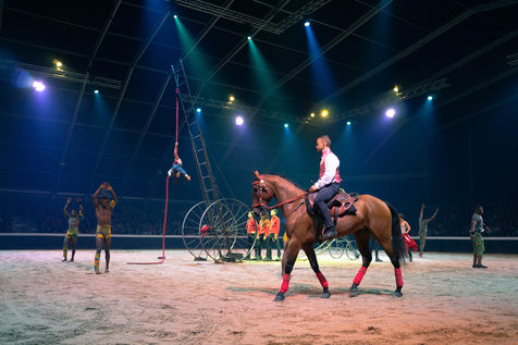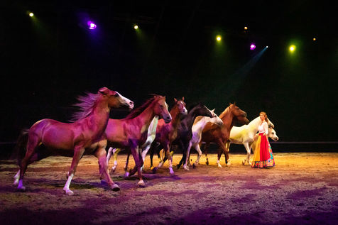 Créé chaque année avec des artistes d'exception, cet incroyable show tout public, mariant les arts équestres aux arts du cirque et de la rue transporte les spectateurs dans un ailleurs rêvé."