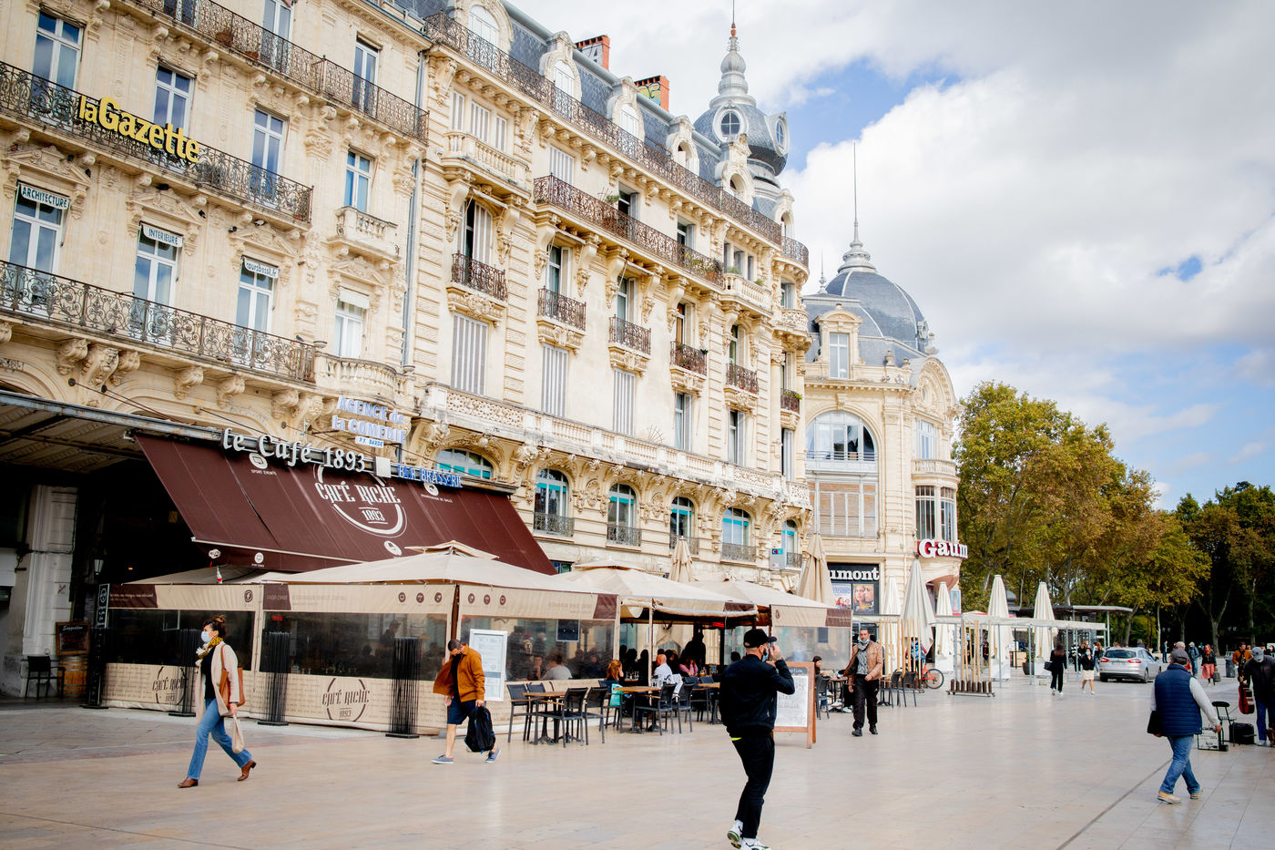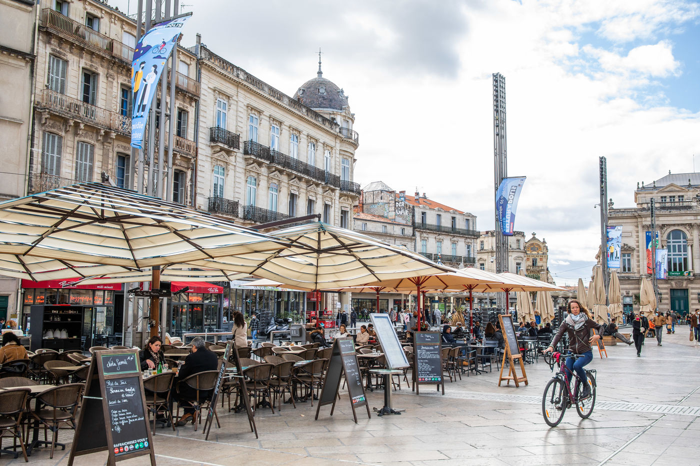 Au coeur de la métropole de Montpellier pendant l'alerte sanitaire maximale. Centre ville, 13 octobre 2020. Bars et cafés resteront fermés jusqu'à nouvel ordre.