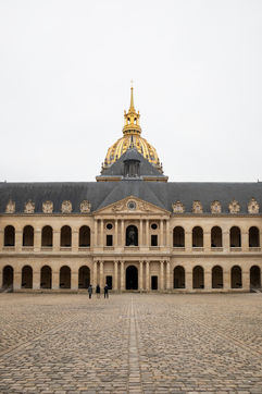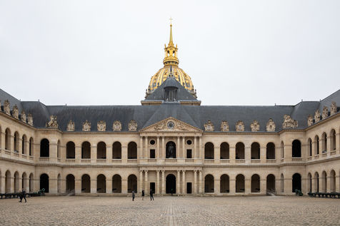 The Hôtel National des Invalides in Paris, is a building in honor of the armed forces. It was built in 1670 under the impulse of Louis XIV. Illustrations of the building and the courtyard of honor, January 2022.