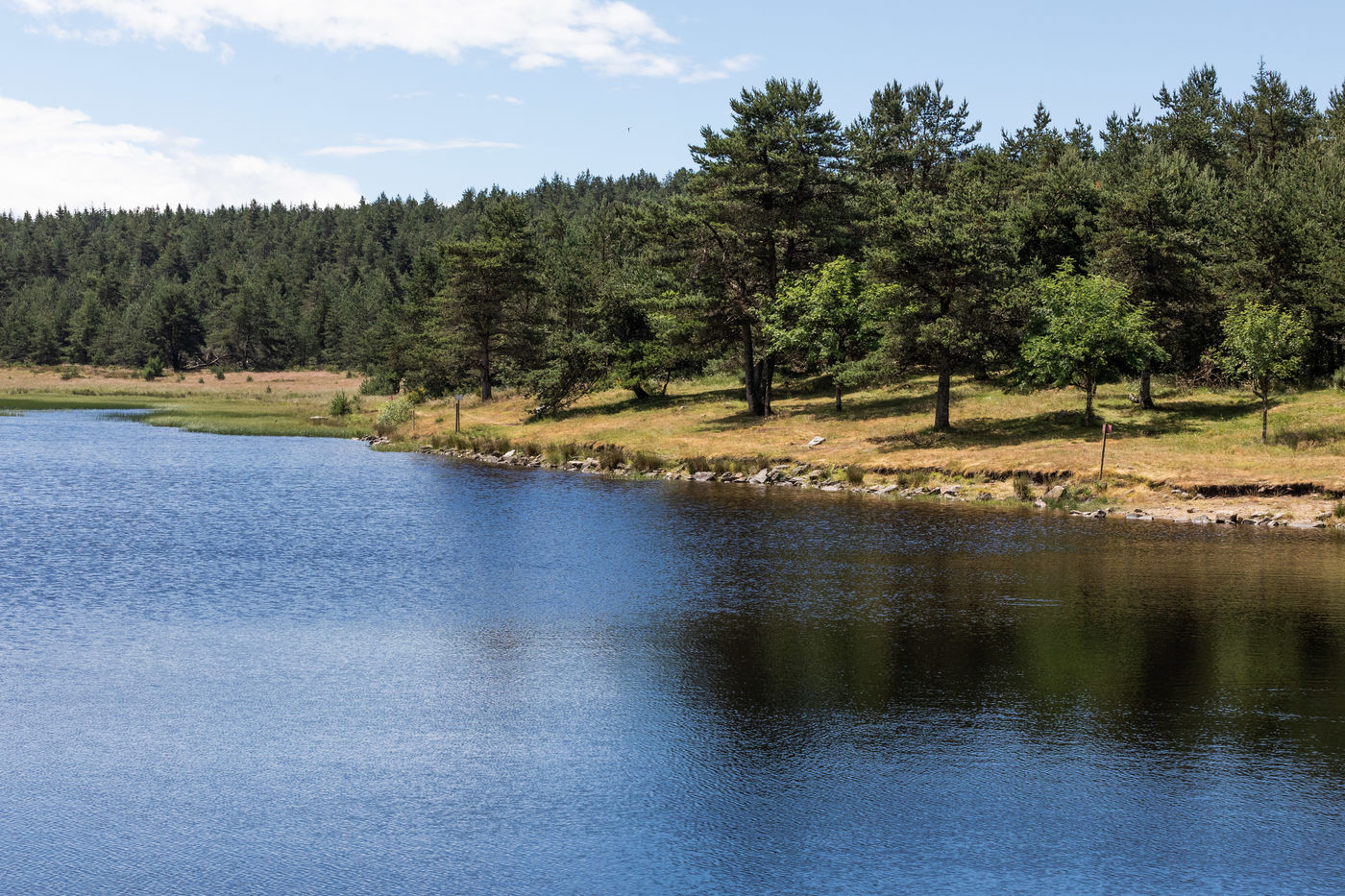 The Barrandon fishing pond in southern Lozère welcomes many tourists and anglers during the summer. A truly preserved area, the site can be reached after several kilometres on dirt tracks. A watering place located at the foot of the giant of the Cevennes, the Mont Lozère.