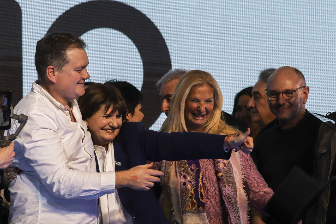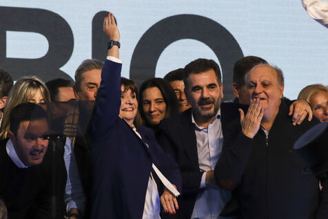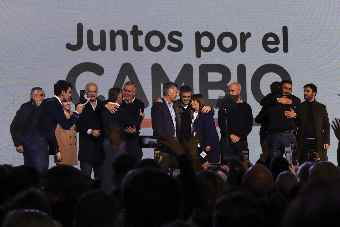 The candidates of "Juntos por el Cambio" (Together for Change) greet their supporters after receiving the results of the primary elections.